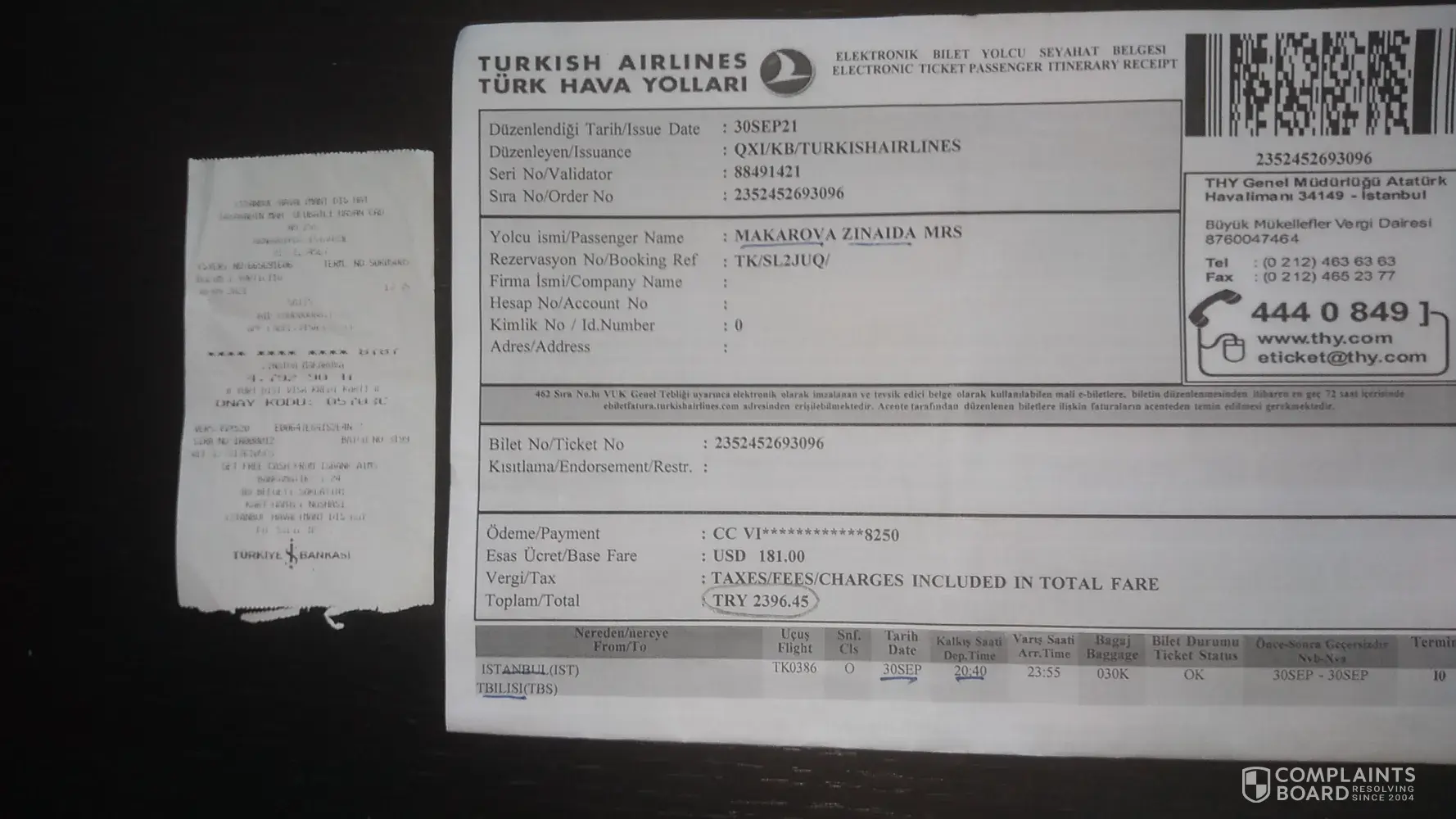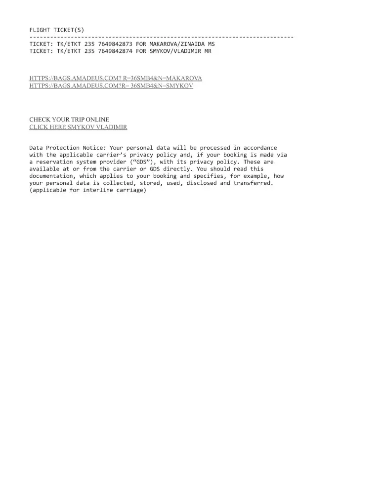 My name is Zinaida Makarova. My husband, Vladimir Smykov, and I bought tickets for September 29, 2021 for the flights from New York to Batumi through Istanbul.