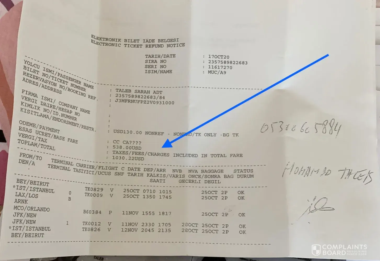finally someone told me that they can't refund it from their side but they will keep it opened ticket for 2 years and so I will have the time to return it when I reach London airport. In London airport they said no it is not possible you should do it in Toronto ! however, now the problem is I received my cell phone bill with 601 Canadian dollars extra-charges for my calls to your office in Istanbul ! who should clean the mess made by your unprofessional agents?