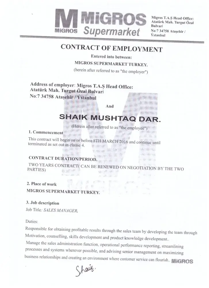 Upon submitting this signed offer letter you are directed to contact most experienced Turkish Work Permit Visa expediting services REBORN TRAVELS & TOURISM L.L.C for the acquisition of your Work Permit Visa Application.Here below is their full contact details: