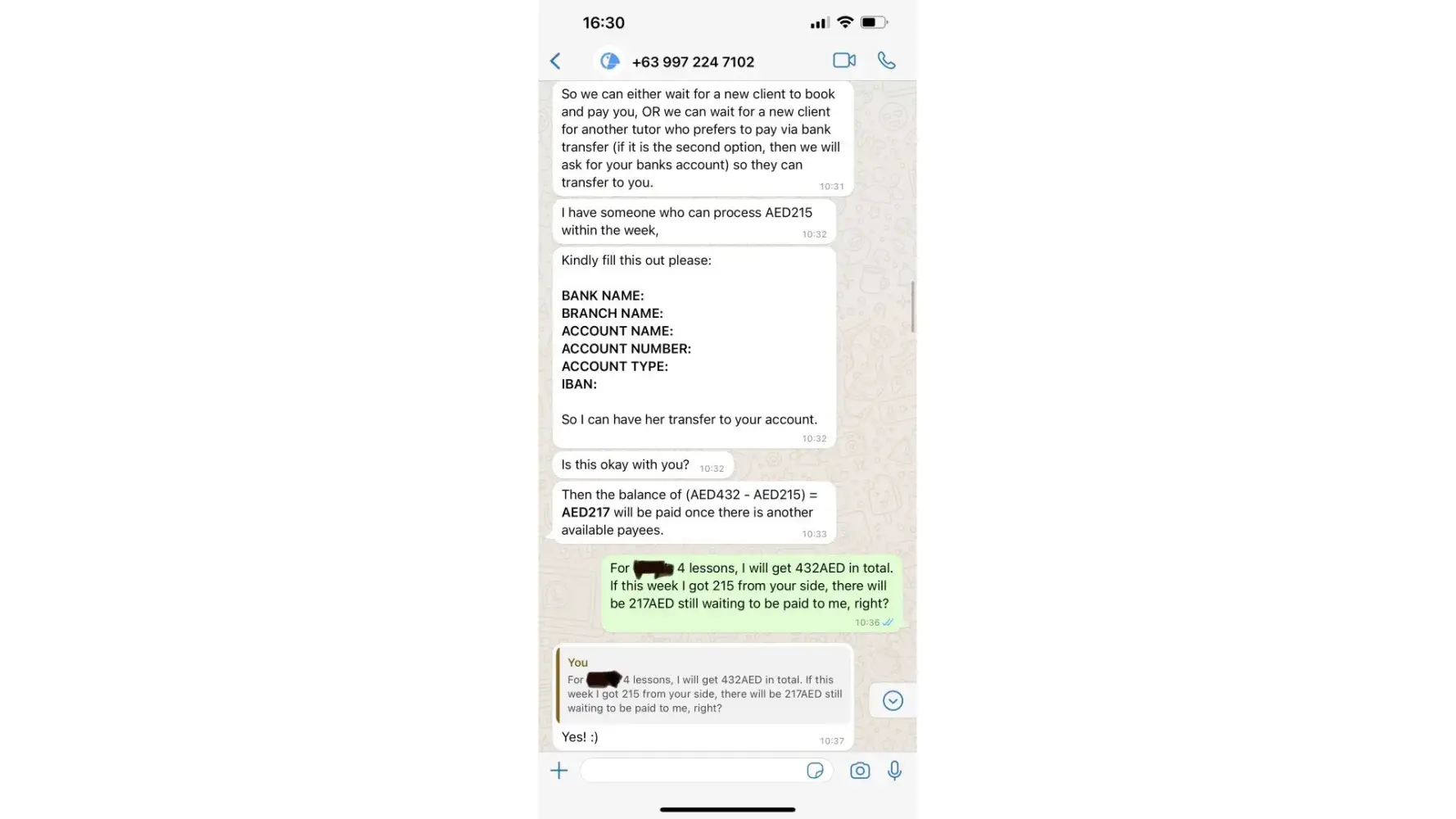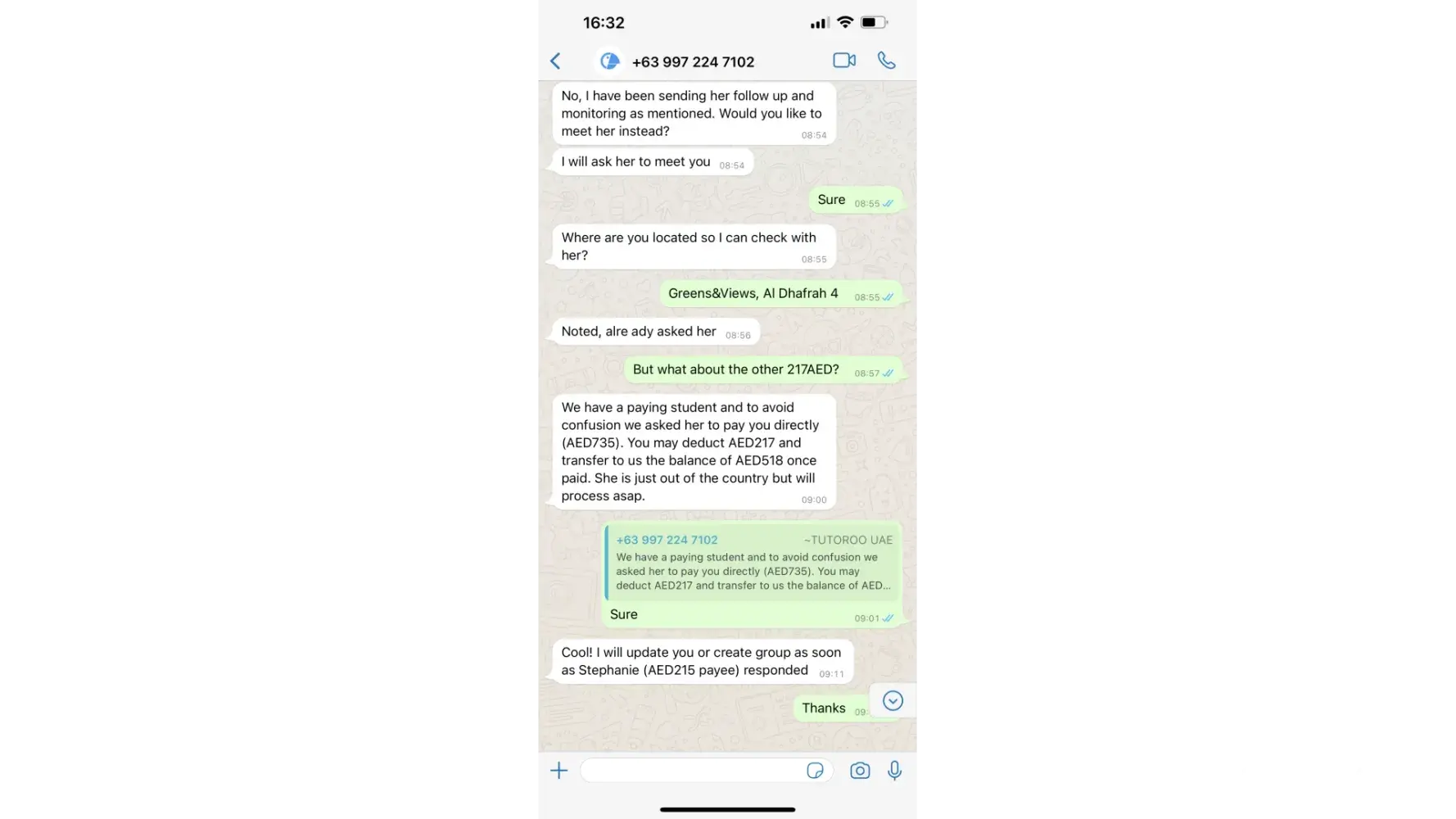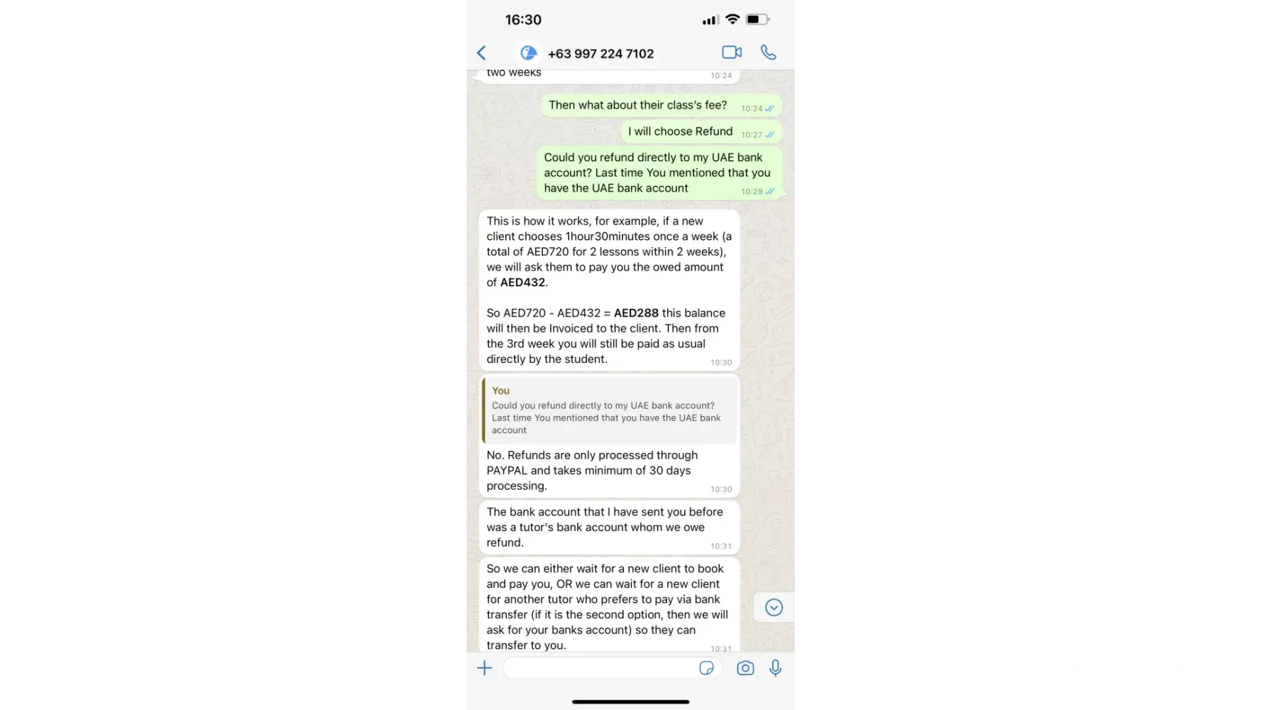 I asked for the rest of the money, Tutoroo said will ask another student to pay me as soon as that student come back to Dubai, but don't know when.