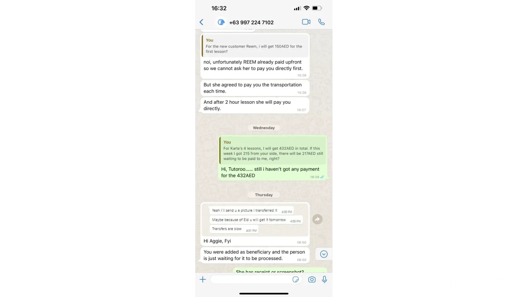 I signed up as a tutor in Tutoroo.co in Dubai, the agreement between me and Tutoroo is that the student will pay for the first 2 weeks to Tutoroo, then in the future lessons, the student pay directly to me; after 2 weeks, if the student decides not to continue the lesson with me, Tutoroo will give 50% refund of the payment to me thru: