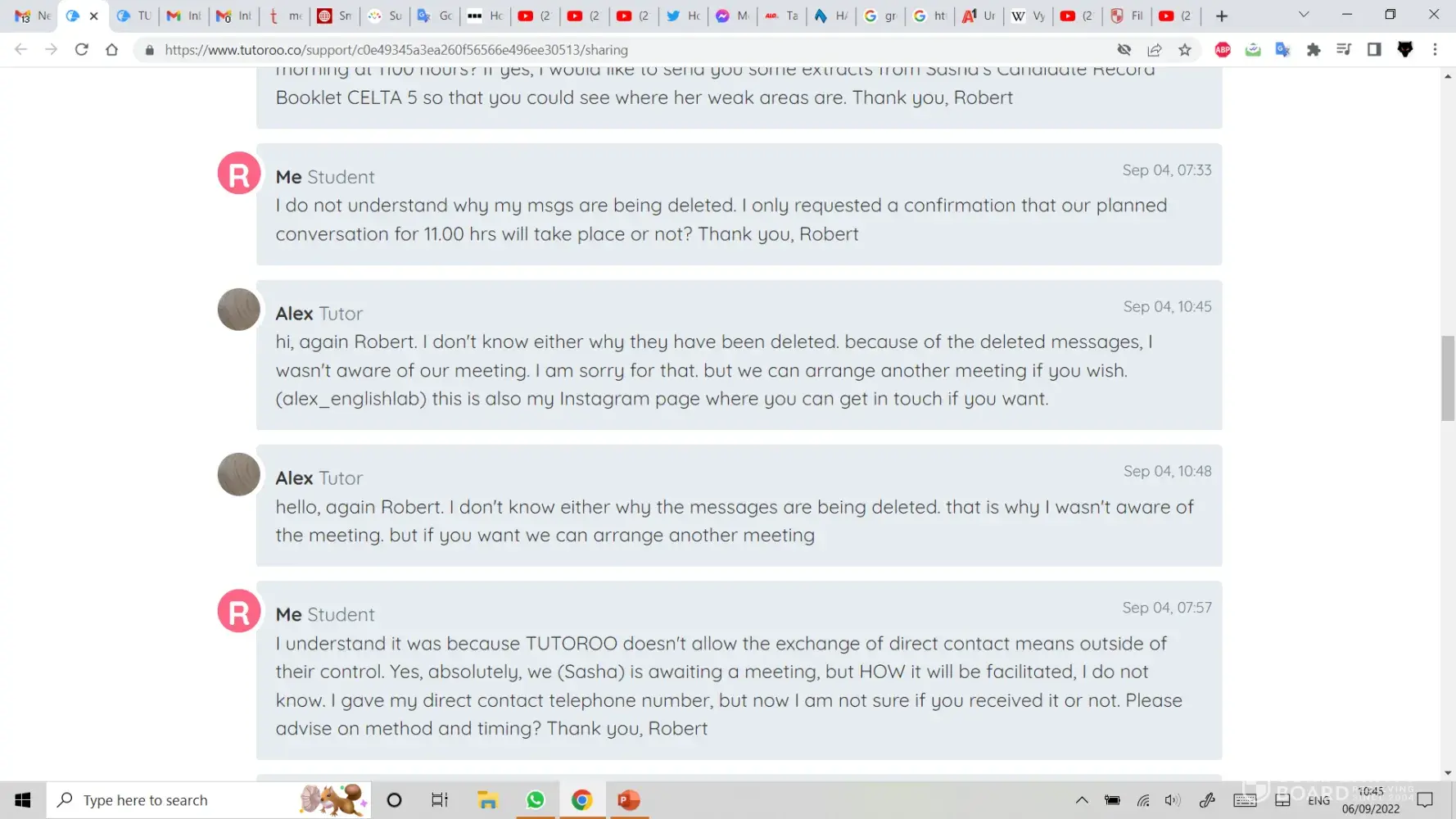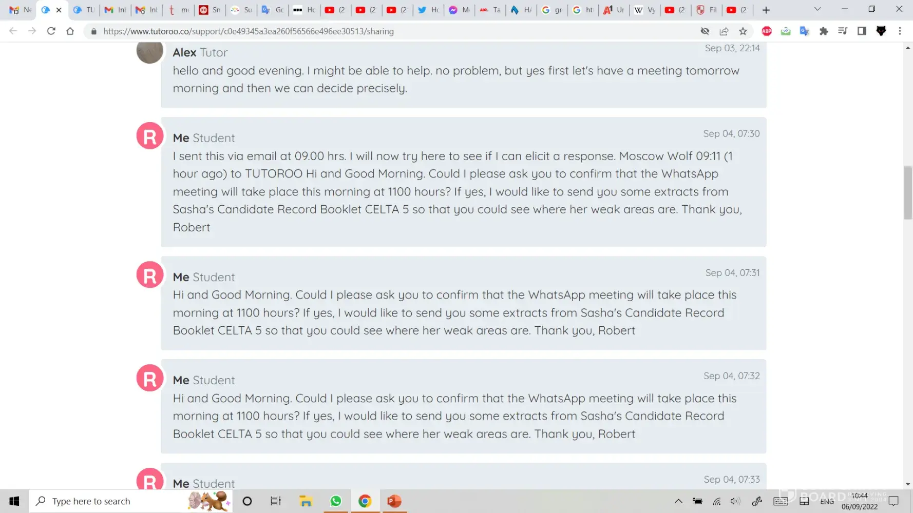 On Sunday 04/09/22 I was trying to find a CELTA (Cambridge English Language Tutor, Adult) Tutor/Coach for my wife who was struggling with certain aspects of the course. I had message exchanges with a Tutor named ALI/ALEX in Istanbul, but he did seem to know how to establish an online lesson and it was obvious that my specific requests had not been passed on to him.