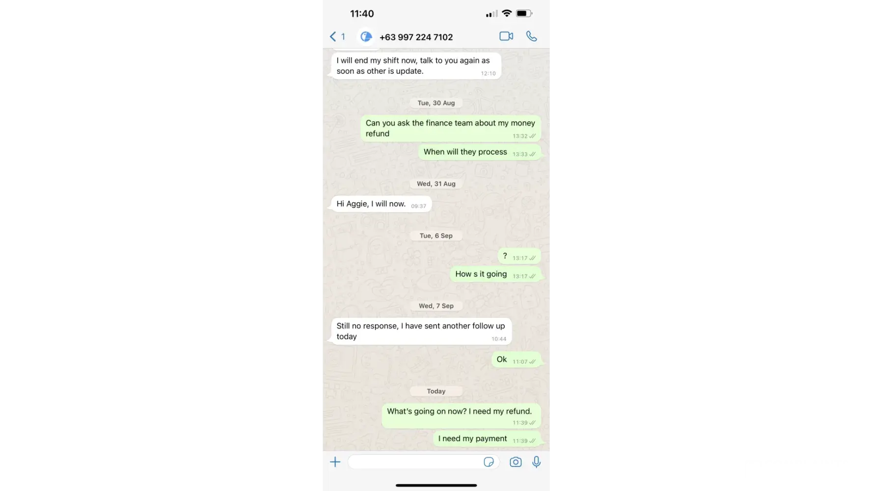 Again, this service has been very disappointing and under consumer law you are obliged to provide a refund.