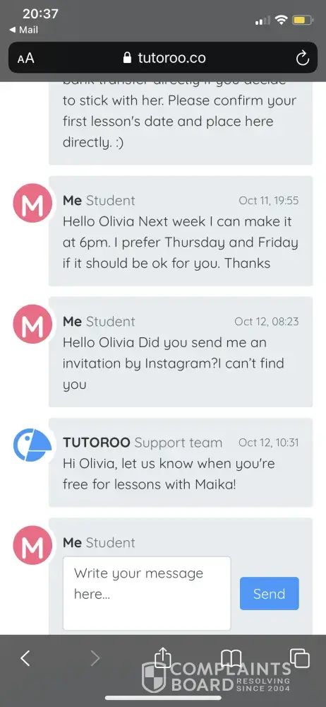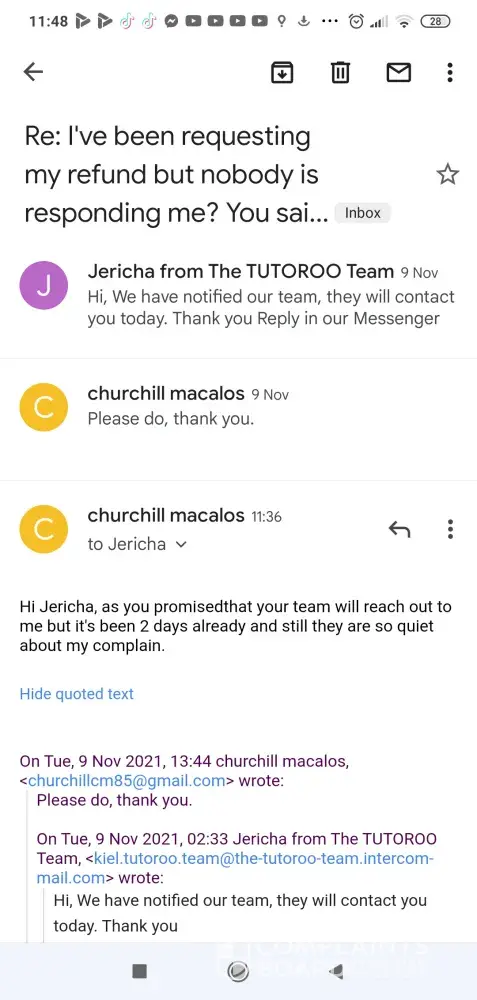 Which it proves my complaints against Tutoroo as an unreliable website/company, thanks.