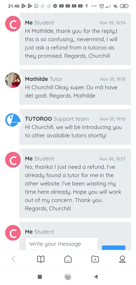 I made a payment for maths lessons only to realize that only language lessons are provided I requested for a refund & was told a maths tutor would be provided, it's been almost a week now & each time I follow up I'm told our team will contact you… I ve found another tutor & I need my refund, suddenly I'm being told by refund policies