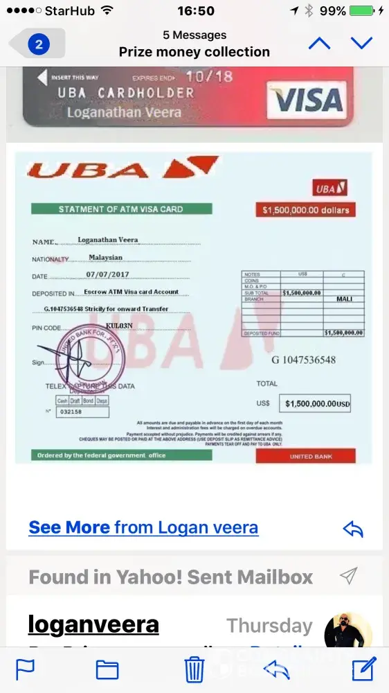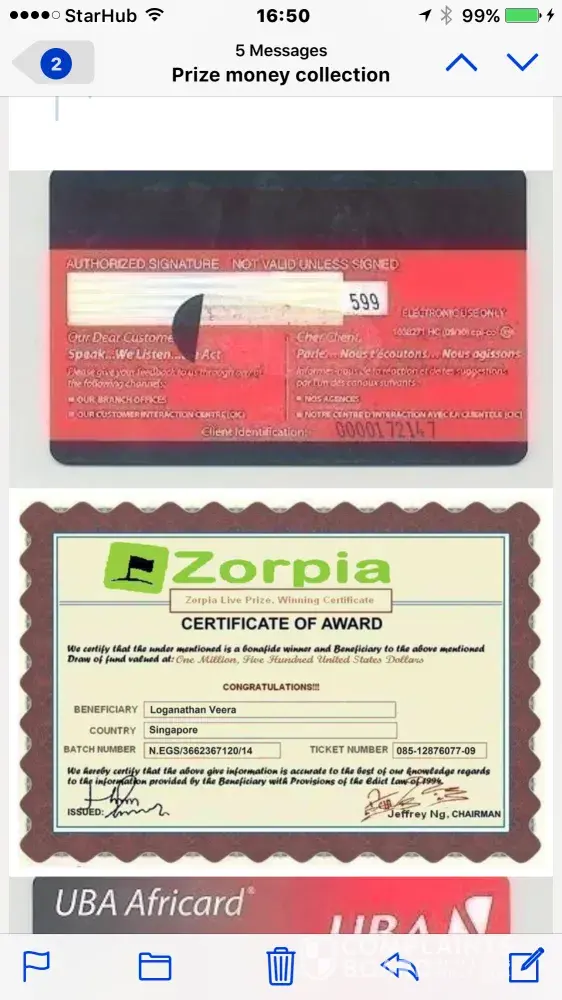 The message you received is a scam and Zorpia does not hold any games or lotteries from which users may win a large amount of money. You may report those fraud users to us by sending an email support@zorpia.com or clicking/tapping the 'report abuse button' found in their profile or in their message to you.