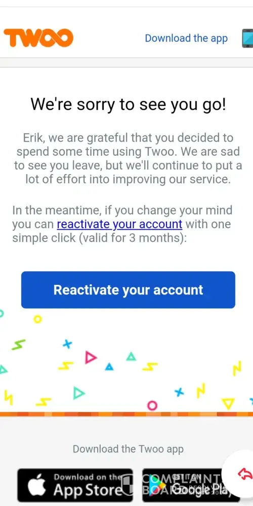 Twoo.com has left an official reply on this complaint.