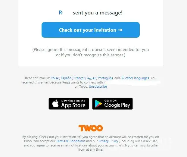 Twoo spammed me at an email address I barely use, using "links to friends" from people I don't know.