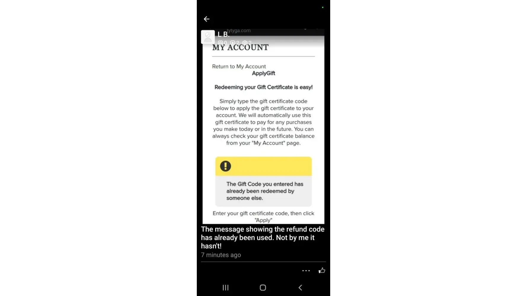I replied that it was over a week, and I had already opened the package and jeez I had not thought of taking pictures of the inside showing that the missing tree wasn't there... How stupid is the way they handle it? Regardless, I jsut wanted my plant or my refund so I could go and buy my kiwi plant from a reputable nursery as tytyga definitely is not a reputable nursery.