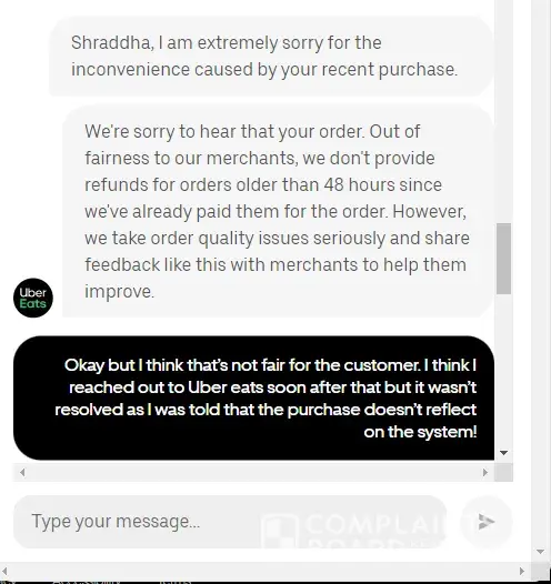 This morning, I attempted to contact customer service again and spoke with a representative named Chahit (screenshot of the chat attached below). Unfortunately, Chahit informed me that a refund cannot be issued as it has been more than 48 hours since the cancellation. To make matters worse, Chahit abruptly ended the chat, stating that he had provided the best possible resolution and there were no further options available to address my issue. I felt as though someone had slammed the door shut in my face. I have contacted customer service several times before, and I have never experienced anything like this. Normally, the representatives have been great and have never ended a chat without asking if the issue was resolved or if there was anything else they could do to assist. In addition to the frustration of being charged for something I never received, I found the representative's behavior to be extremely rude and unprofessional.