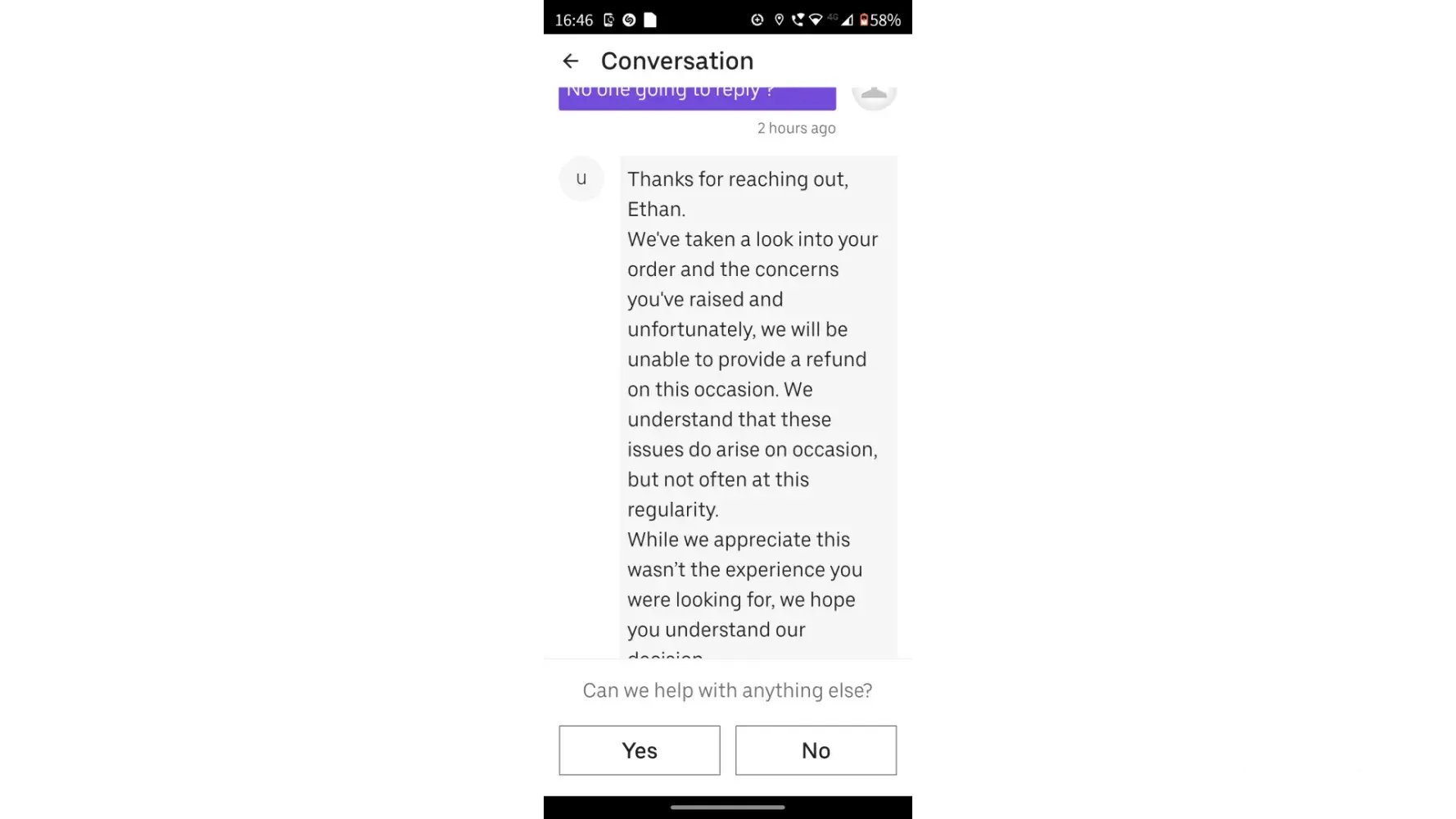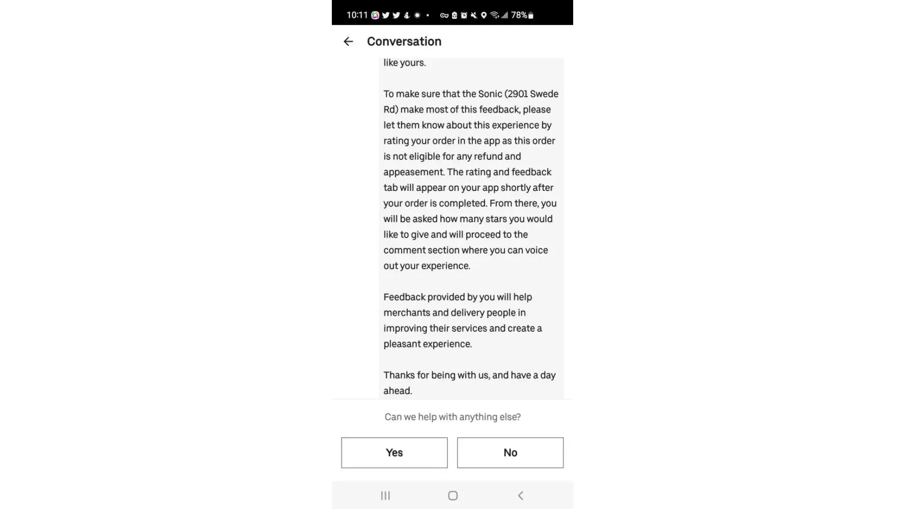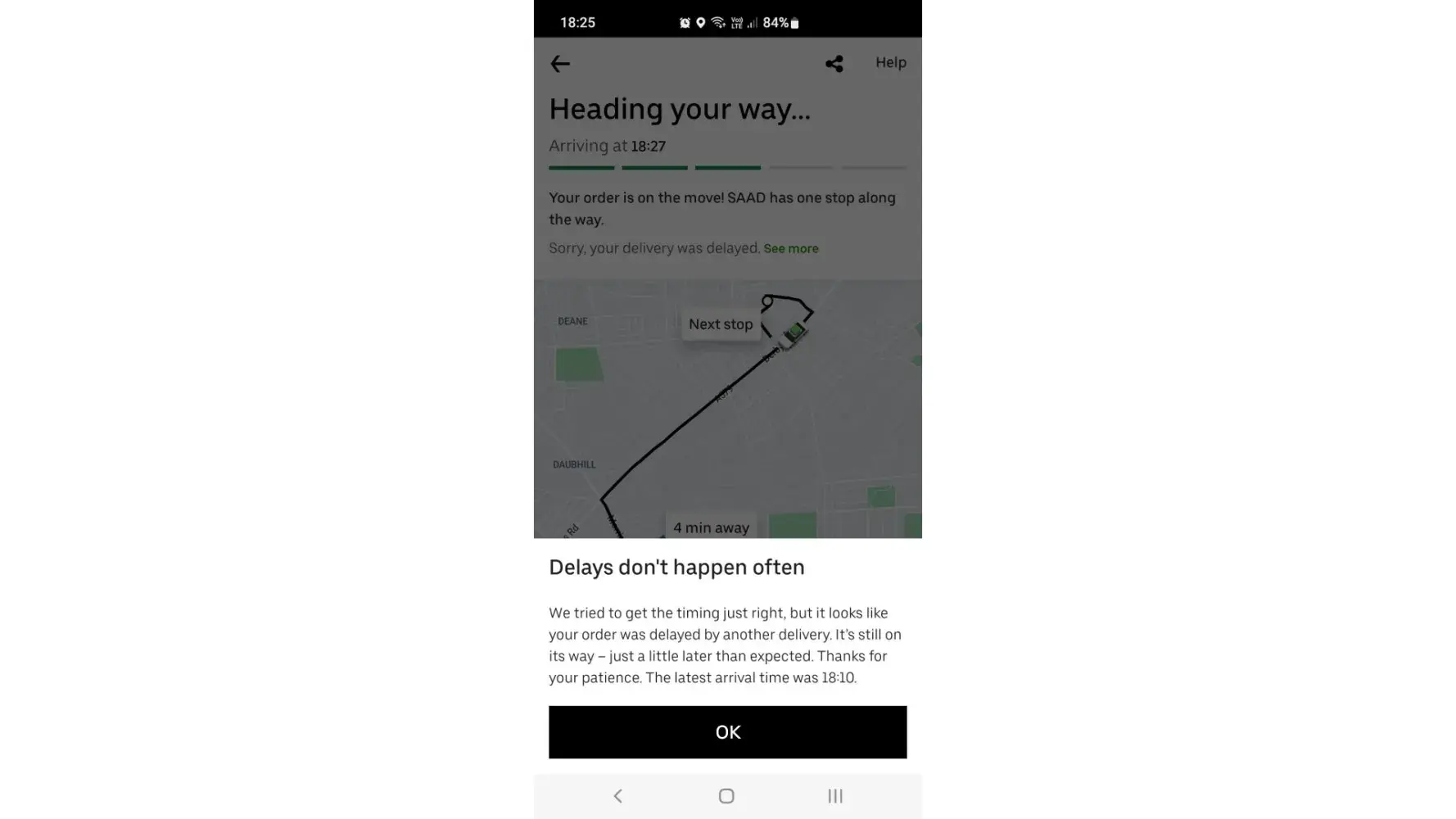 Late service, abusive delivery driver