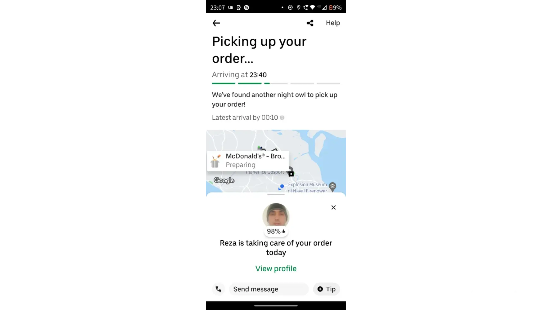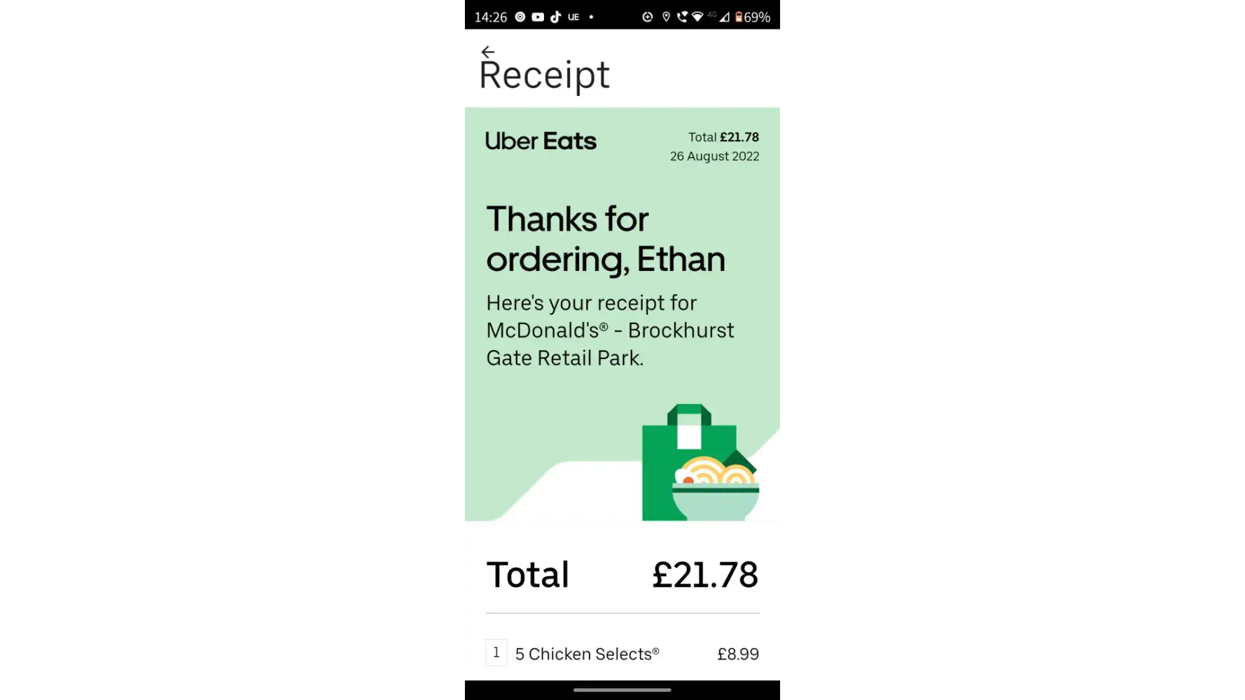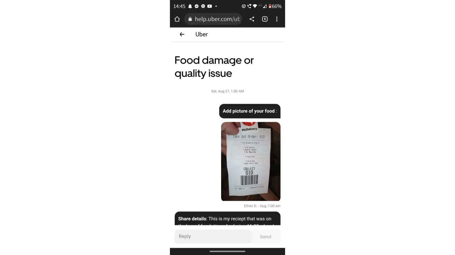 Just too clarify this was my yesterdays order just trying to order some from Uber eats