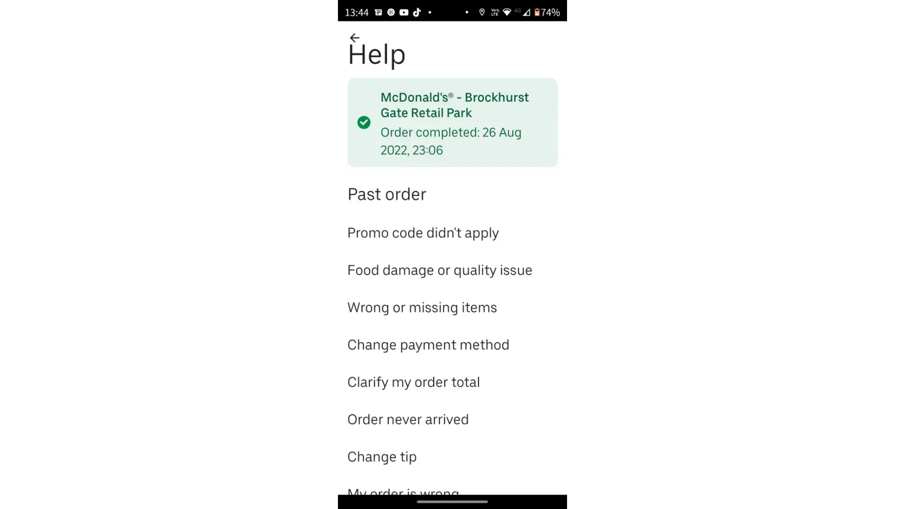 I placed an order on 17th September 2022 for a McDonald delivery. When the order arrived there was a cheeseburger missing and the other food was cold. I went through the app to complain. I managed to get a refund for the missing burger but was not able to complain about the cold food as I had already recieved help with the missing cheeseburger it would not allow me to get more help with that order.