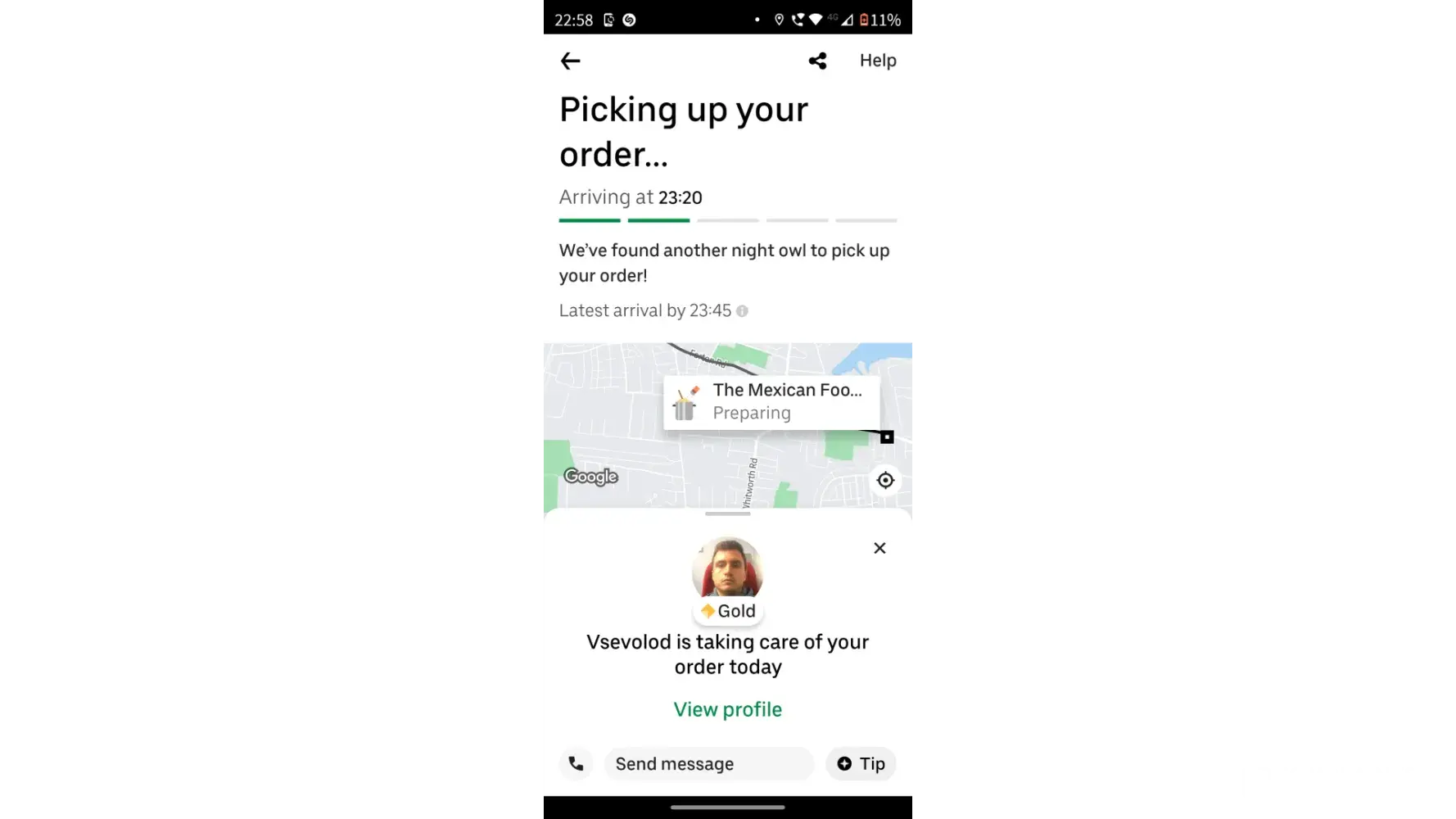 So firstly I order The Mexican food place, 20 mins go by, for the restaurant to ring me and tell me their closing soon, so had to get a refund, so 20 quid down with no food..