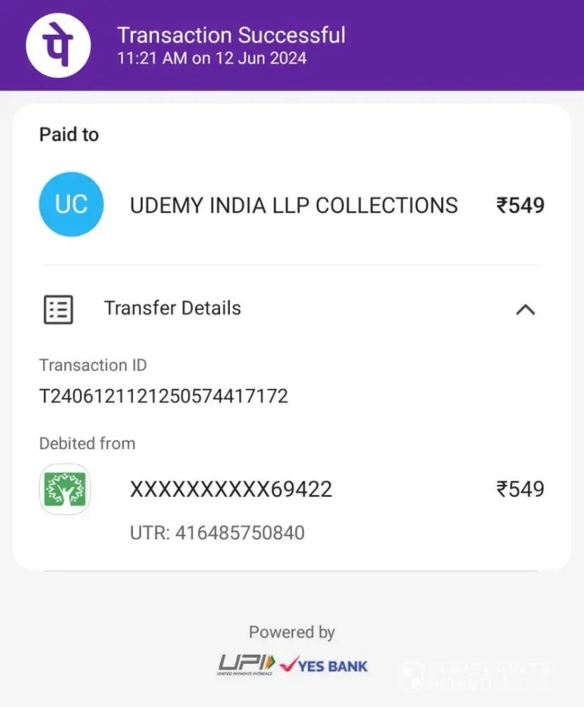 Udemy.com is real scam organization. Here is my experience. I have purchased 3 course's from Udemy and paid 1080 INR from my phone wallet. I have not received access to my purchased courses. When I contact Udemy customer support, the said they have not received money but I can see that money was deducted from my phone wallet and I have transaction id. Funny thing is, During my discussion with Udemy customer care representative before I provide them transaction id, they said even though I have transaction id they can't help in providing access to my purchased courses. After 48 hours, they mentioned that they have not received money and hence they cannot provide access to my purchased courses. Even though you have a transaction id which clearly chows that payment was done to Udemy india as shown below. I request all who wants to purchase courses from Udemy, just think twice and it is up to you. I AM SURE THIS IS A BIG SCAM.