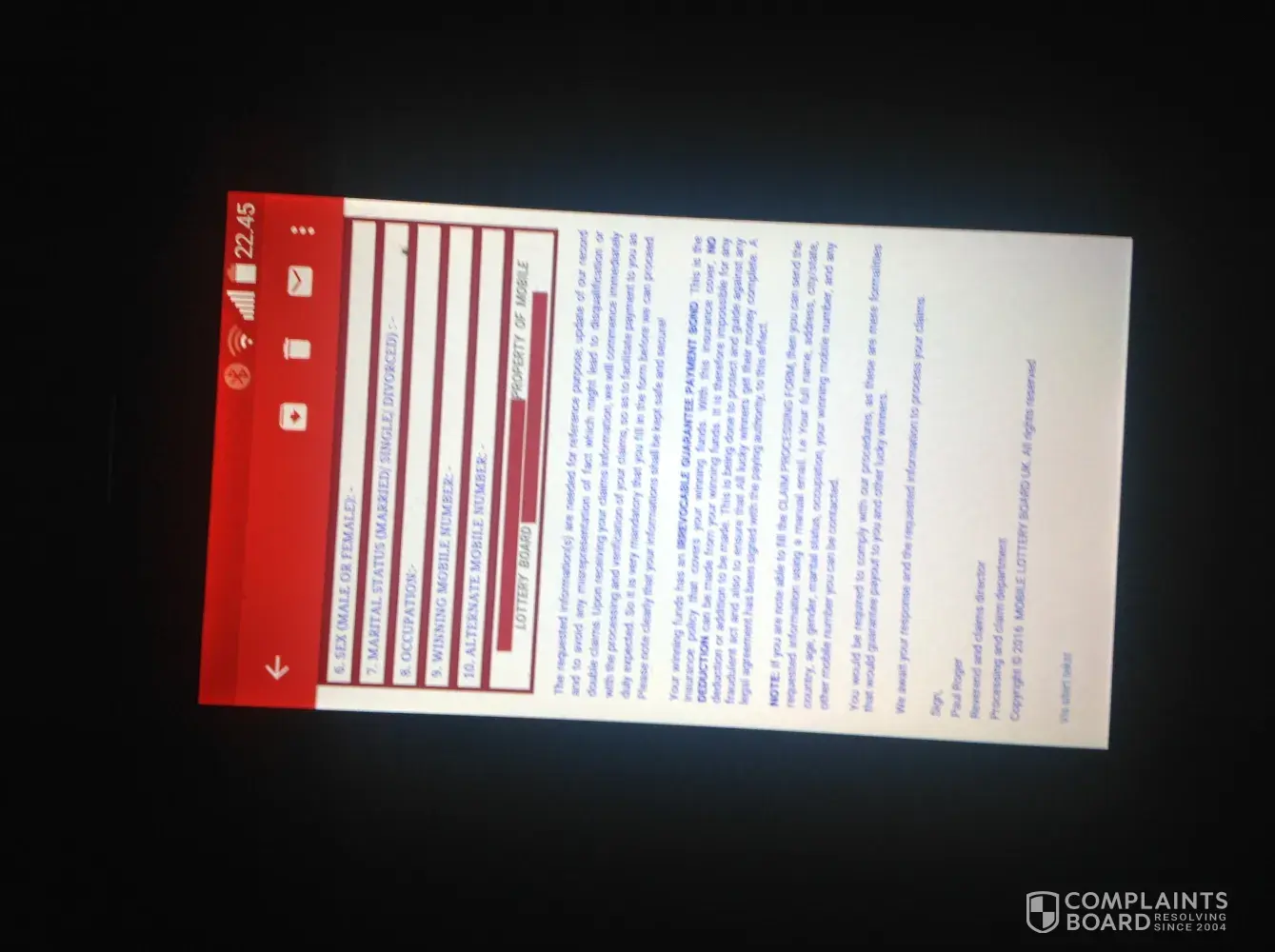 I live I'm Drammen and I got the mobile lottery winner. Winning number was [protected].from uk ...tThis letter says that I win 1, 000, 000, 00 euro the name called Paul Roger Reverend and claim Director. Processing and claim department They sent even a form to be fill.