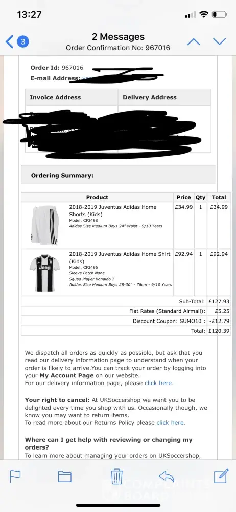I unfortunately placed an order with uksoccershop before i ever saw these reviews and complaints. I hope to refuse my order very soon but will not recommend to any one.