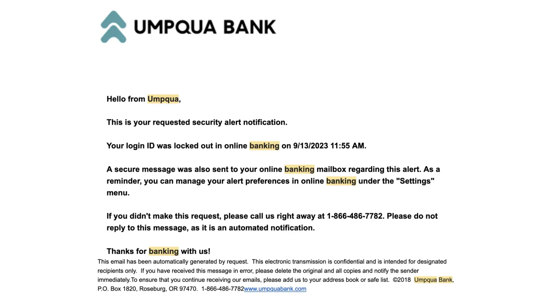 Read full complaint and 1 commentIs Umpqua Bank Legit?