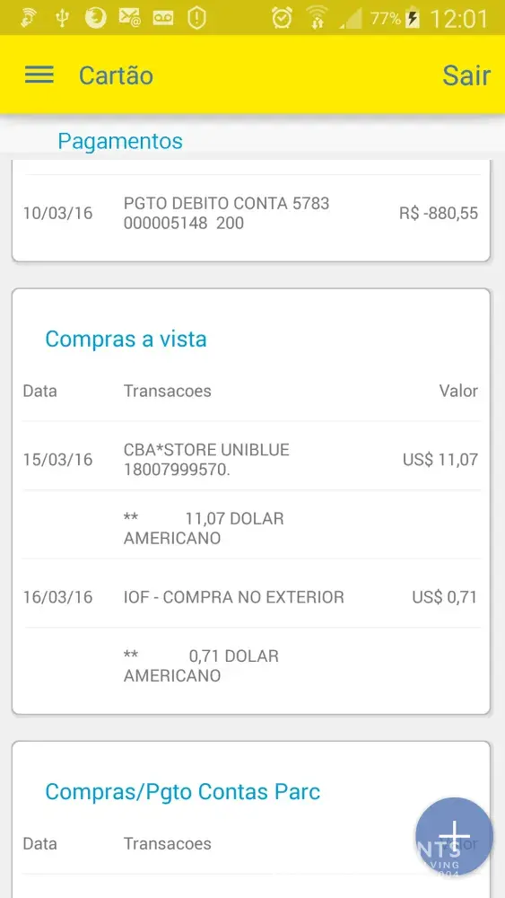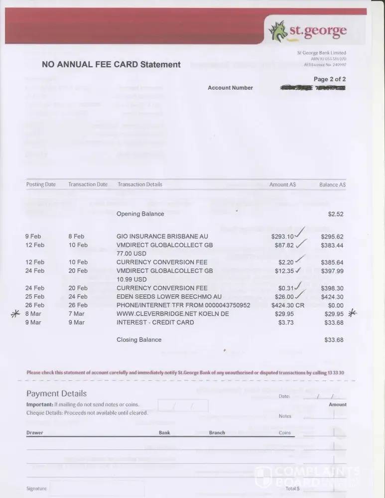 On 15.03.2016 my VISA credit card bill showed a CBA*STORE UNIBLUE [protected] charge of US$11, 07 and US$0, 71 tax for international transaction.
