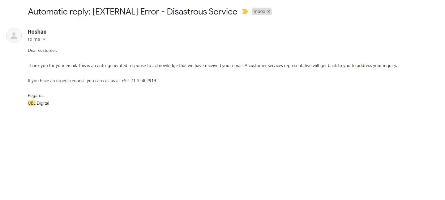 - United Bank [UBL]'s complaint resolution process is inadequate and ineffective. The support team lacks customer service skills, training, and resources, resulting in only 2% of 0 complaints being resolved.