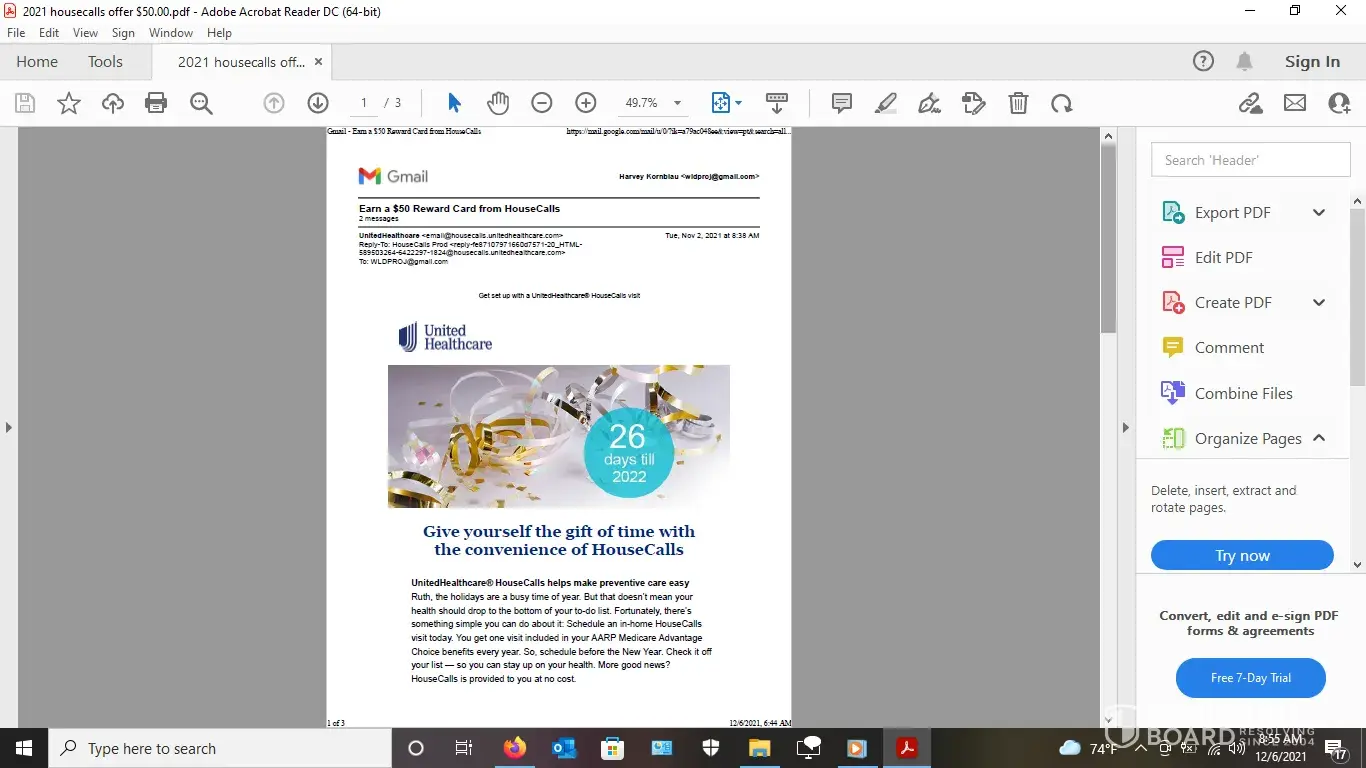 Had a house-calls visit on 10-5-21 as per promotion and told by visiting nurse that I would be getting a $50.00 Visa debit card within 6 weeks. As of November 2021 I had not received this debit card and was told it was mailed out on October 6, 2021. The agent told me they would send out another . As of today December 5 2021 still no debit card. called again and got the run around. could this be a sham?