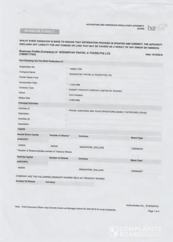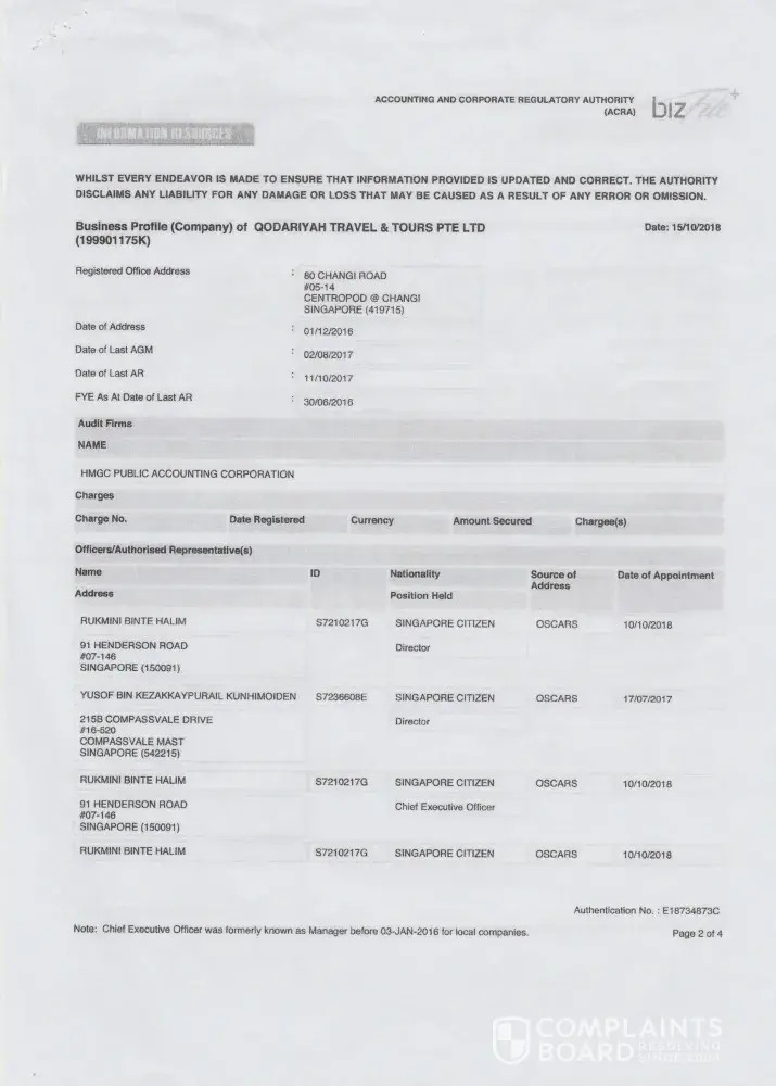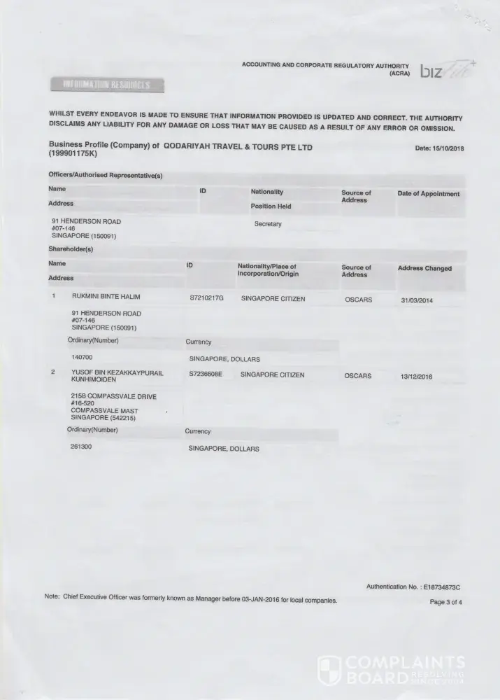 Last Monday (15 October 18), I have lodged formal complaints to ACRA and Police (please refer to the attachments). They are investigating the complaint.