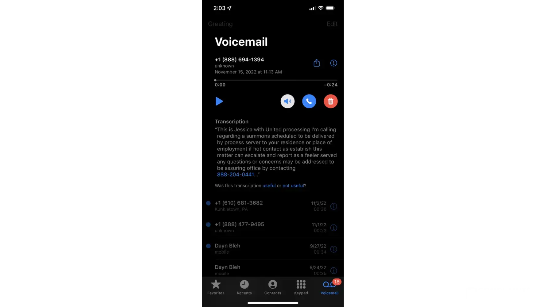 I questioned it at first, but realized they never said my name, address, or place of employment. They left 2 messages 11/7/2022 & 11/11/2022 threatening me with a summons. Both calls were different phone numbers, but the same girl, Chloe. Each message asked me to call a different number.