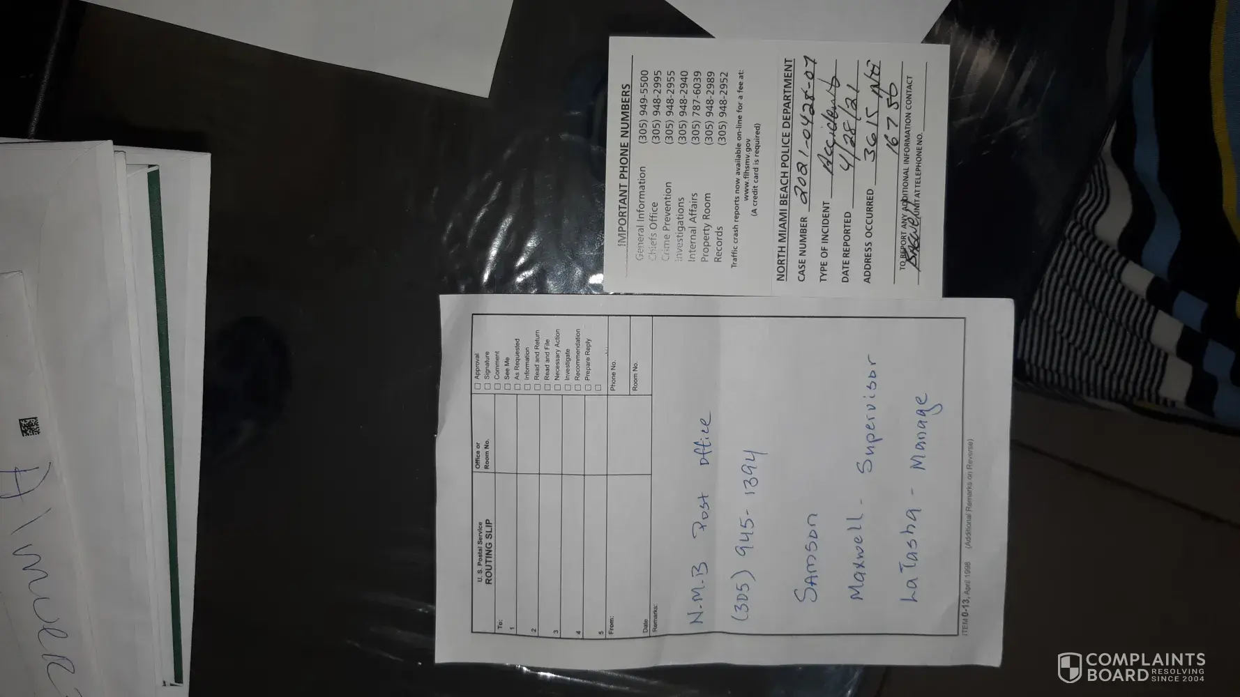 NMB Post Office truck hit my car from 04/29/2021 is a big damage on the passenger door I still w the problem they dosent fix the situation I visit a lot times the NMB office and they not help nothing