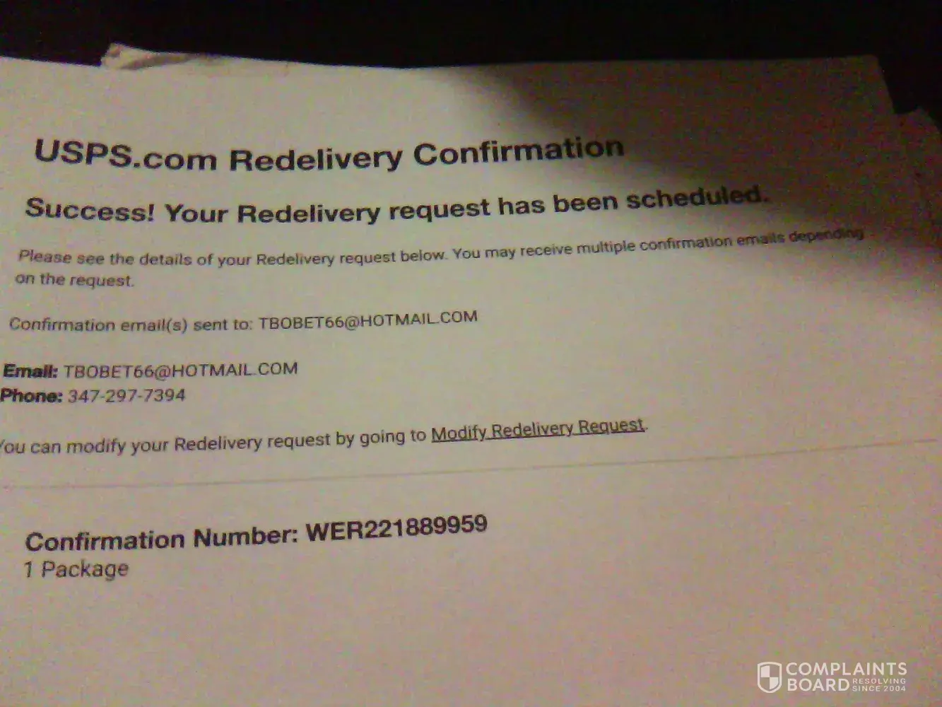 Read full complaintMail delivery