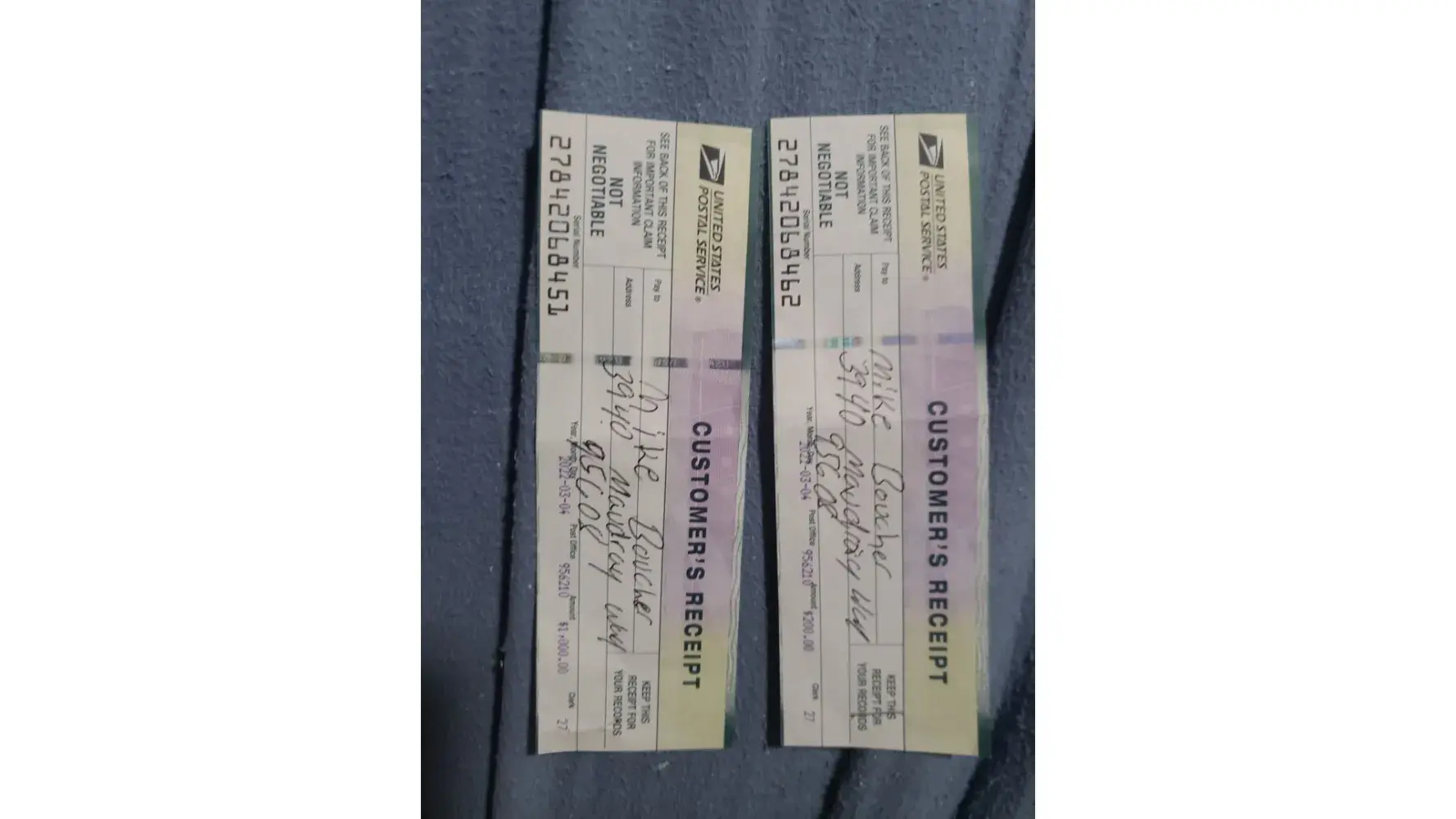 On march 4th 2022 I purchased two money orders from the Citrus Heights P.O I filled out the money orders completely with me being the purchaser and my landlord being the receiver one in the amount of $1000 the other amount was $200 I then put the money orders in an envelope addressed to my landlord placed stamp and put envelope in the out going mail slot inside the post office the same way I do every month to pay my rent. On the 17th of March I received a call from my landlord saying he did not receive the money orders. I took my receipts for the money orders to P.O where purchased and paid to have the money orders tracked . I received copies of the money orders showing that they had been altered refilled out and cashed at the Foothills Farm post office on the 7th of March 2022.(the copies I received it appears to still be able to see the impression of my writing on the checks I do not think they should have been cashed) I followed the instructions that came with the copies I received making copies of the receipts and a written statement and went to mail them to address as per instructions but when I tried to mail it I was told that the zip code nor po. box existed I showed the letter to the PO employee and asked him what he suggested I do he had no advice so I went home and after going online trying to decide and making several calls and getting nowhere I decided to mail it back to the address that sent me the copies .I received an email from them informing me that the money orders had been cashed and there would be no refund given. I found the whole process very unprofessional and unacceptable I feel as though it is quite possible that my money orders never left the post office that they were mailed from.
