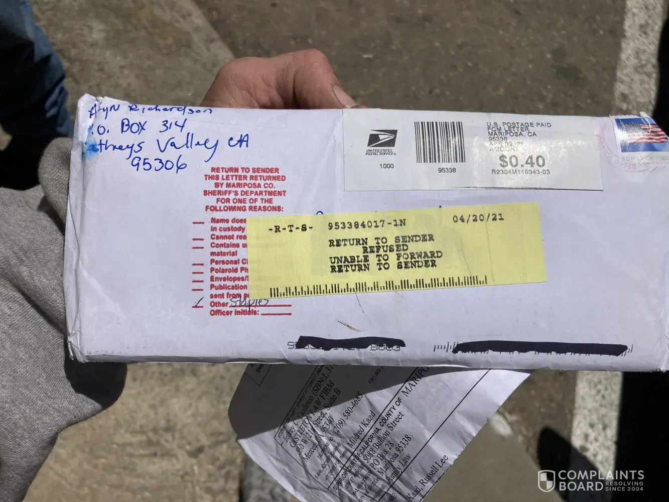 My packages keep getting returned to sender, with a moved did not leave forwarding address I have gone to the office but the window is closed and you can hear them talking but they don't acknowledge. They just continue on with their conversations I work during the day across the street and I live next door to the post office. My driver's license has my post office box is my address. I track all my packages and I have informed delivery some workers in there are friends with another individual that I am currently in a legal matter against and they are messing with my mail like how did it take 10 days for a letter to come from Mariposa to Cathay valley. I waited for that letter because the paperwork was needed in my legal matter and I went everyday before the court date and three times the day of before the 1:30 app. Not there. I stopped back at three thirty that day after court and bam there it was. It's not right!