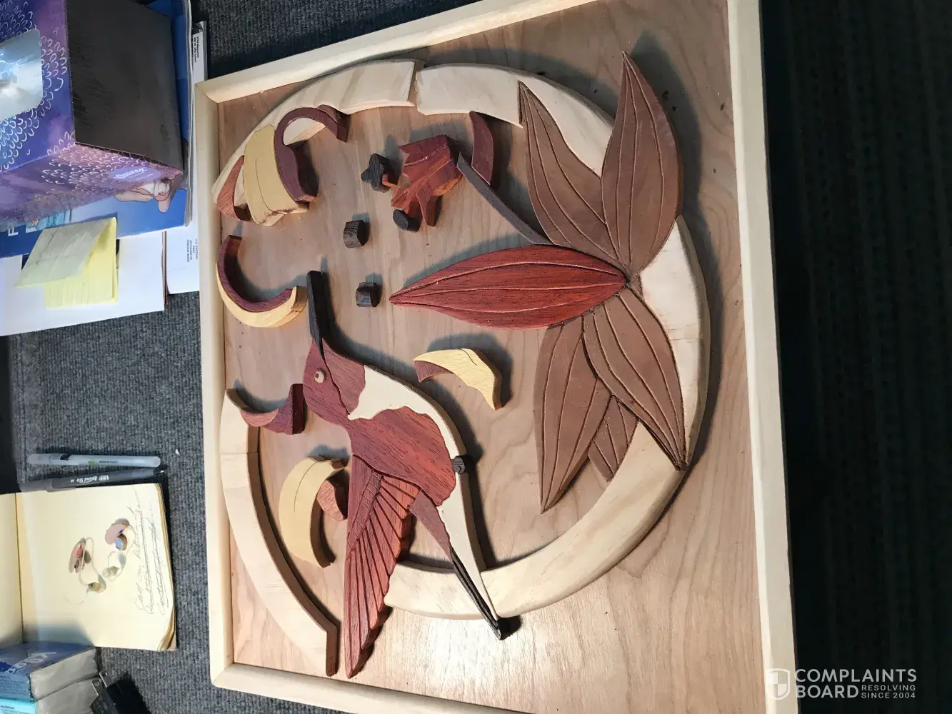 My great aunt sent me a package containing a wood sculpture that was handmade. Before I opened the box I saw multiple wholes and lots of damage to the box. When I opened it, the wood sculpture was in pieces. Now we are trying to put the pieces back together because she didn't make a second one. It's truly frustrating that this is how people handle our people's packages. This isn't the first time I've had a package delivered that was broken and not from the same location.