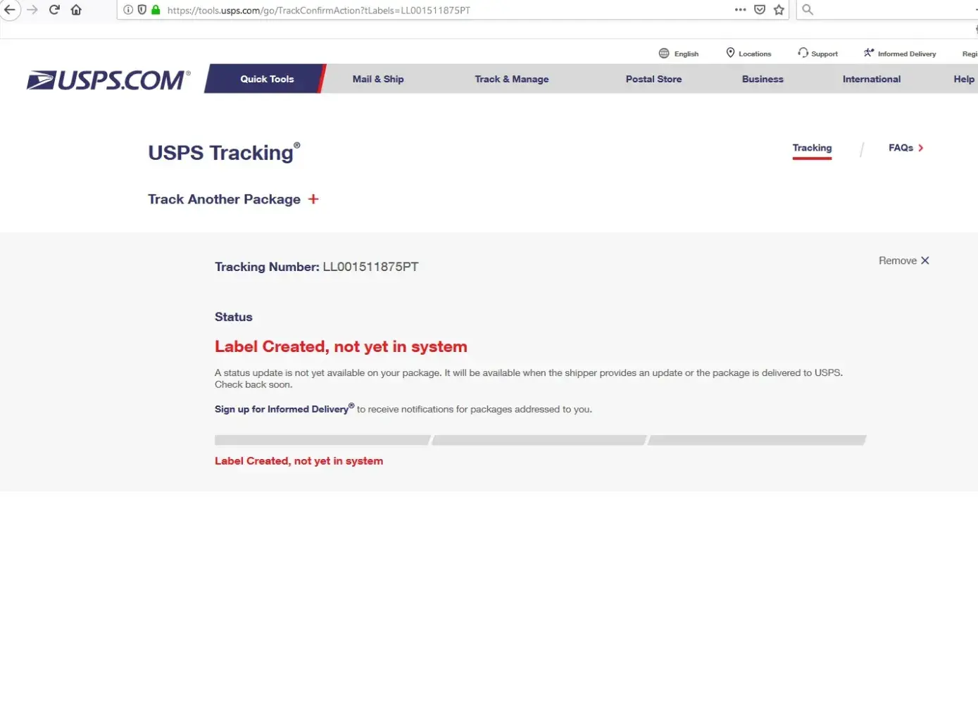 Weirdly enough the tracking record for my item has became removed from USPS website and now only the following text in red font is showing up "Status: Label Created, not yet in system" (perhaps they are sending it back to me again?).