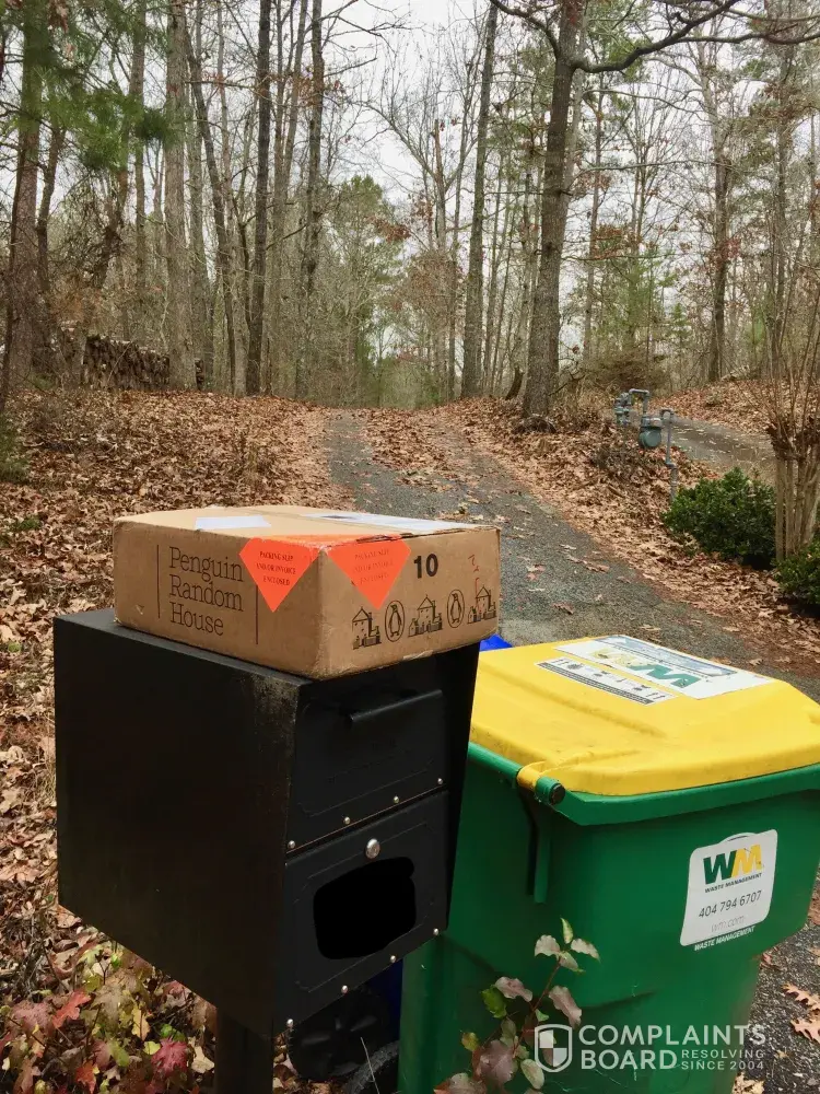 December 16, 2018. USPS delivery was left on top of my mailbox sometime after 7:30 Saturday evening and not discovered until Sunday afternoon. Our driveway is 1/4 mile long. We usually have Held Mail and other packages delivered to our steps, no problem by USPS, FedEx, UPS and other couriers. Also, tracking indicates it was delivered at 5:28 yesterday but that is false documentation as we were out to dinner until 7:30 and checked the mailbox upon our return. No mail was in the box either but was today, when the box was discovered. I have attempted to find a way to file a complaint on the USPS website but to no avail. There are no options for this category. One would think the carrier would know that Penquin Random House stamped on a box probably indicates books are within and therefore could be damaged by weather. Thankfully, it did not rain overnight nor was it stolen during this holiday season when thefts are higher.
