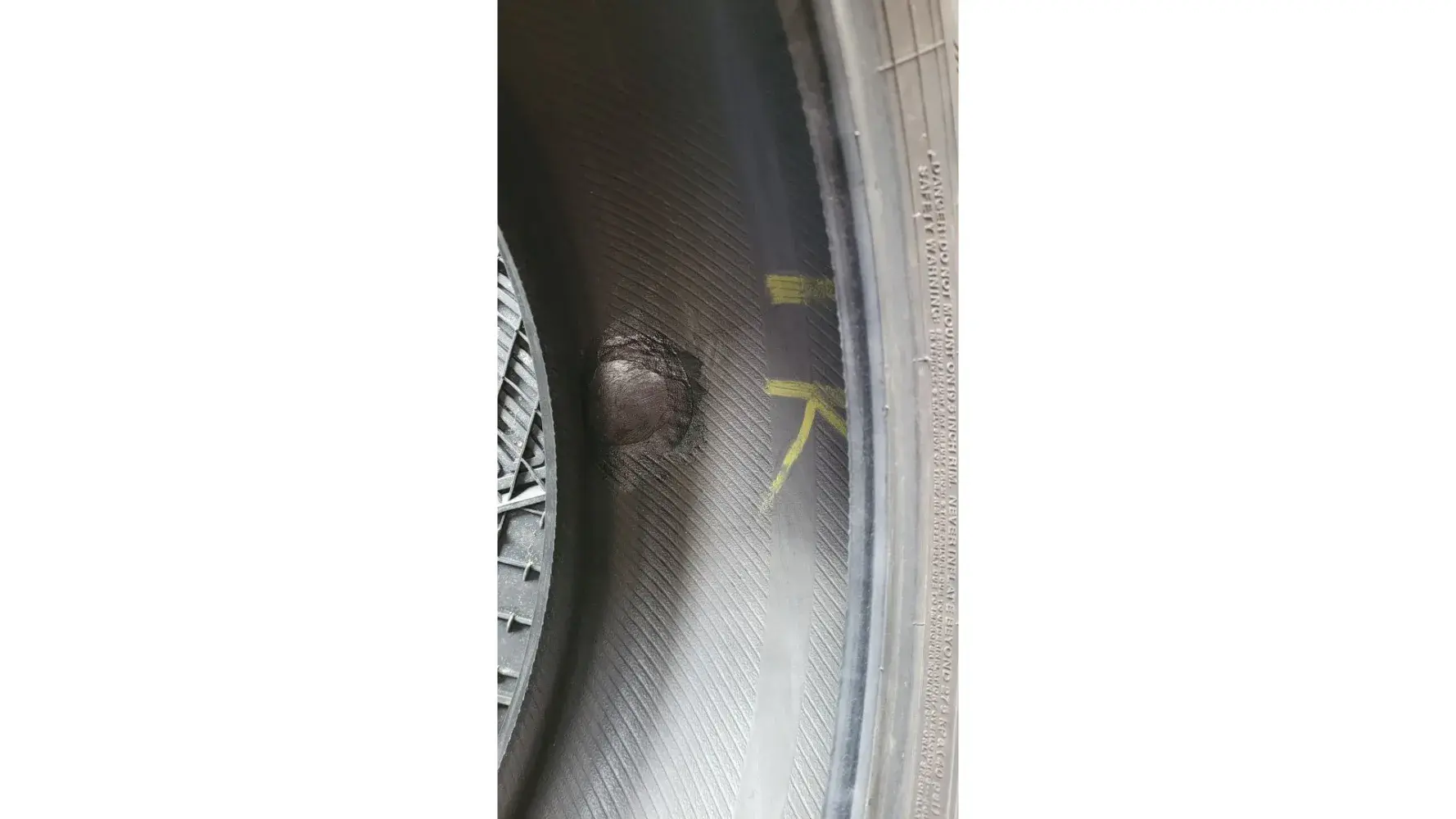 Upon inspecting the tires, I noticed some issues. One of the tires has a metal piece attached to it, and another tire seems to have been patched at the edge, which, as per my understanding, is not a repairable part of the tire. I have attached pictures for your reference.