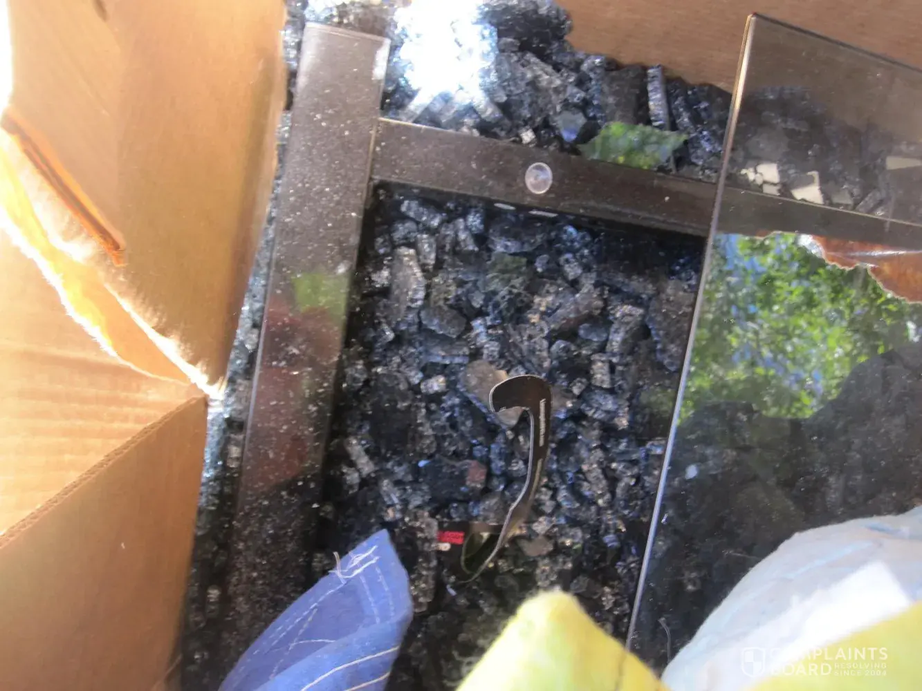 - brand new chalk board/wooden art easel broken in half, but still thrown into a large box on top of other items.