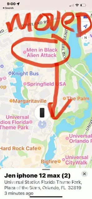 Feb 18th - no updates from universal, phone located at men in black in the am. Called guest services. Explained my flight was leaving and I was told they were going to retrieve after the ride closed. They informed by that on certain rides they have to wait for the mechanics to retrieve items. I asked when they were company and they said they are a third party company and were not sure when they would be servicing that particular ride. They also asked if I filled out a form and suggested that I have the access pin listed to verify my identity upon finding the phone. Once again I explained I was not comfortable with this. On the evening of Feb 28th the pin on the location of the find my iphone moved from men in black to the lost in found area. I called again and was told that they had not logged the phone, but it was possible it would be logged in the am. Staff suggested I come to guest services the following day..