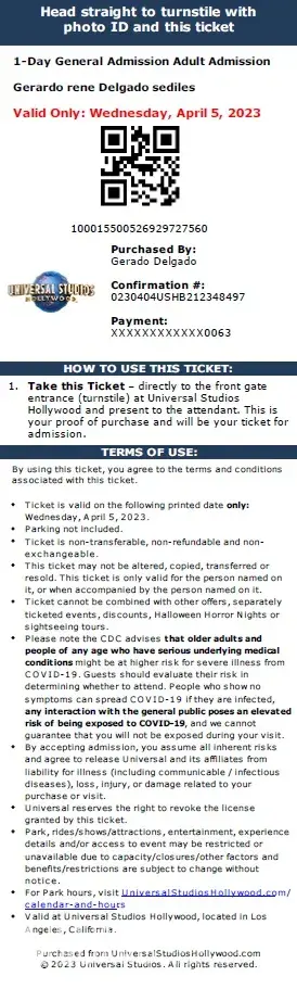I am Brandon's father and am the one who purchased the 5 five-day tickets for Universal. I want to make it very clear how incredibly angry and dissappointed with the response and lack of customer service in this company.