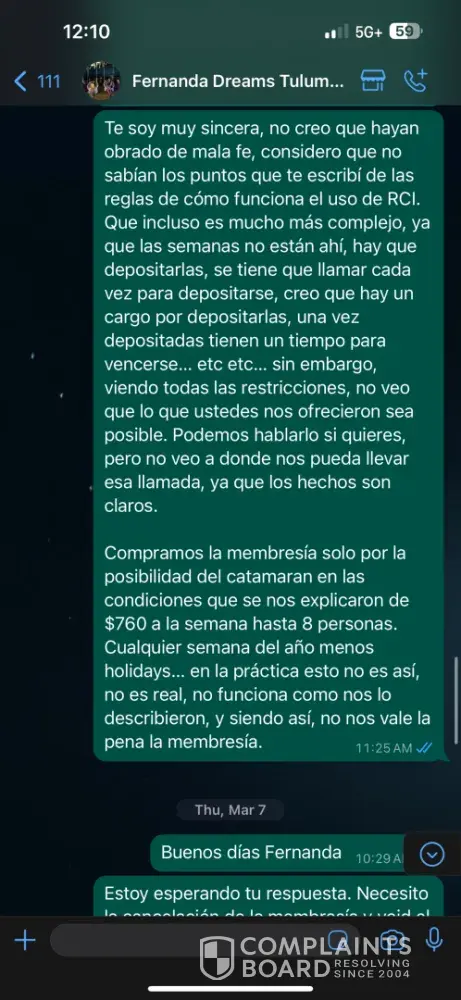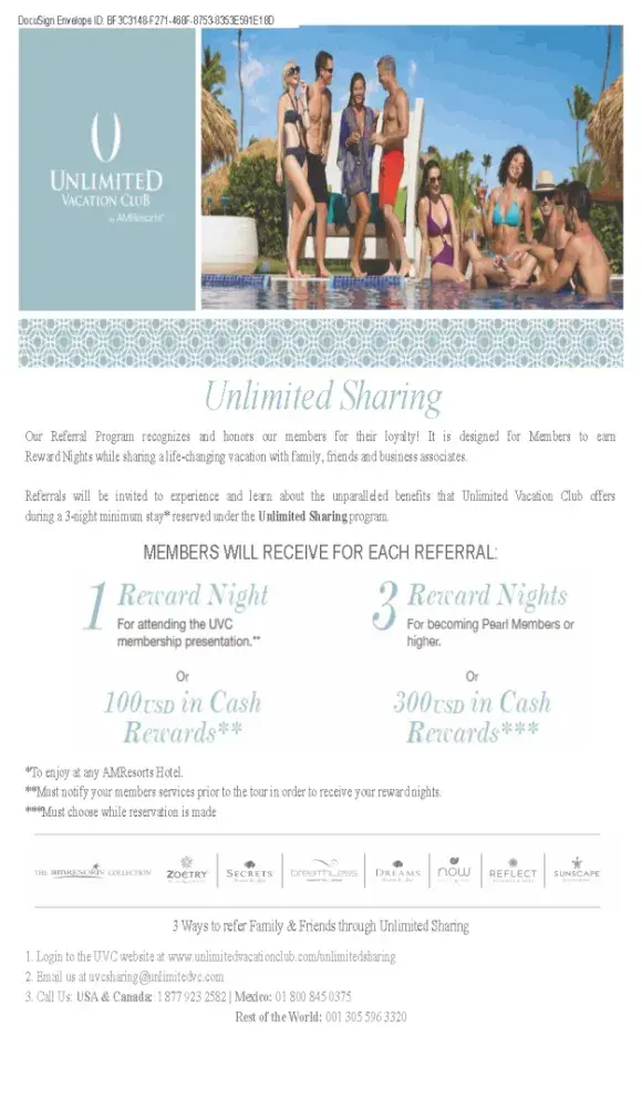 On February 25, 2024, I attended a sales presentation by Arrivia, Inc. at Dreams Tulum Resort & Spa. False claims were made about the Unlimited Vacation Club (UVC) membership. I was promised 40 weeks at $760 each and 4 weeks at $299 each, usable for up to 8 people per reservation on the RCI website, including hotels and exclusive catamarans (1 week for...