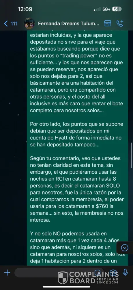We were very skeptical about high pressure sales pitches, prefaced with breakfast champagne. However, after repeated efforts to obtain representations as to what was being offered, and the guarantee of the Hyatt brand, we agreed to a plan that included "unlimited booking of all Hyatt Properties and all inclusive for 5 years." Since we intended to use the...