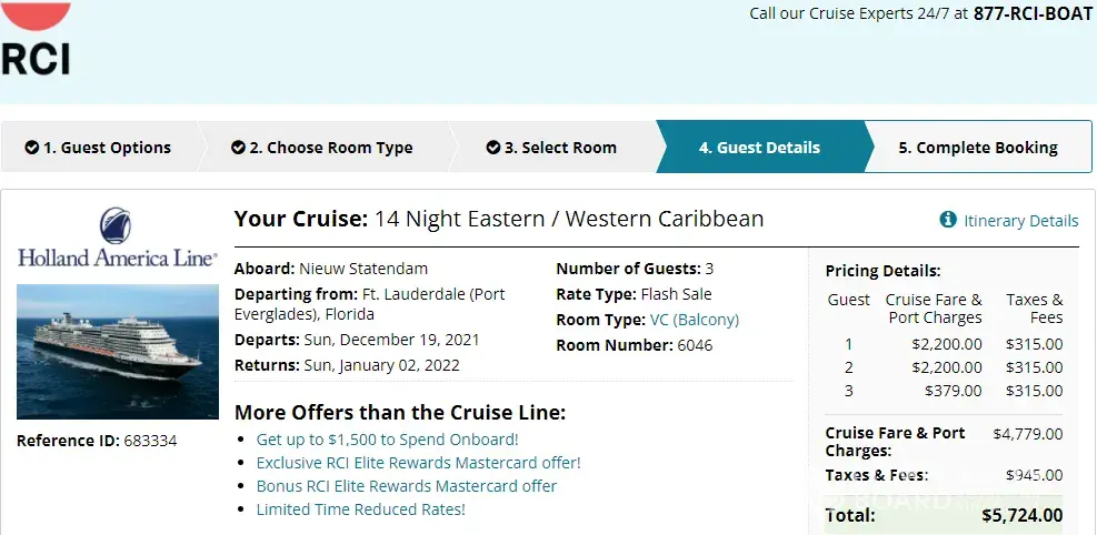 Desired outcome: The current price in RCI for the same Cruise (cabin) I bought is $5,724. I expect my price in UVC is at least $4,224 ($5,724-$1,500 credit). I paid $5,985, so I expect a refund to my CC of $1,761.