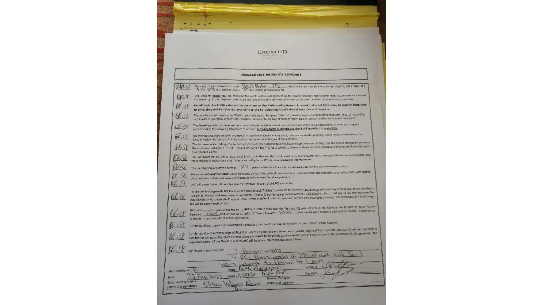 Unlimited Vacation Club Honoring first visit incentives and a signed contract
