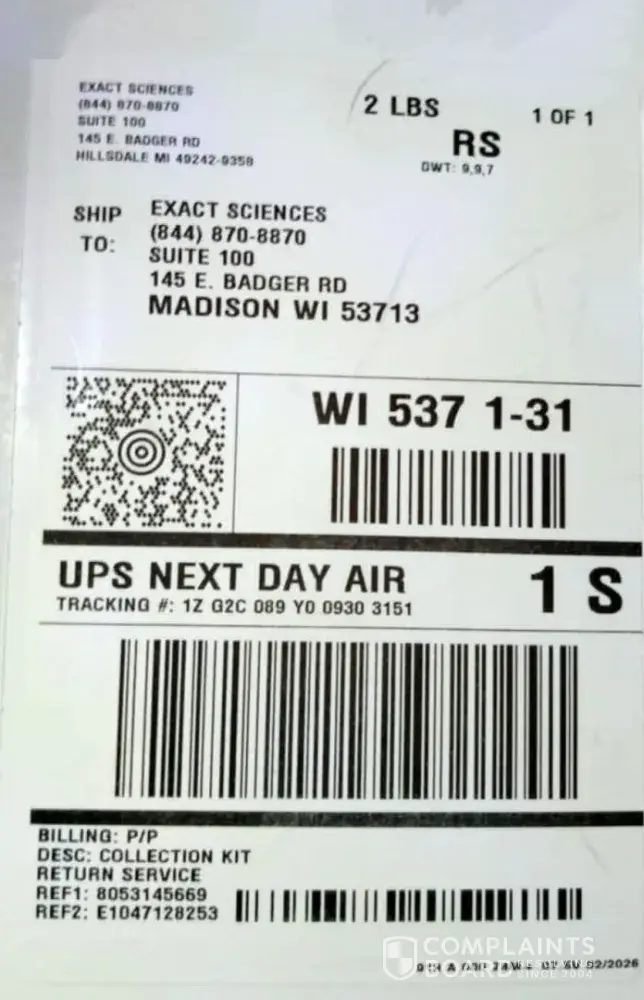 I received a Cologuard collection package, I followed all of the instruction so that all would be correct and accurate, on Friday the 13th of March I went online and scheduled a time for pick up, Tuesday the 17th of March from 9:00 A M until 6:00 P M, I collected the sample and prepared it for pick up and on the 17th I placed the package on the front porch...