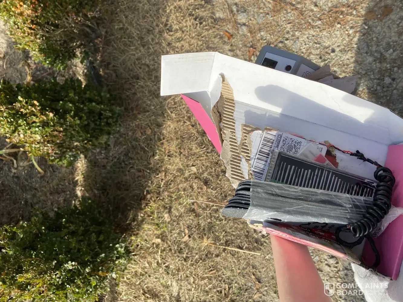 12/18/21, A package was delivered outside my gate and some neighbors dogs damaged the item