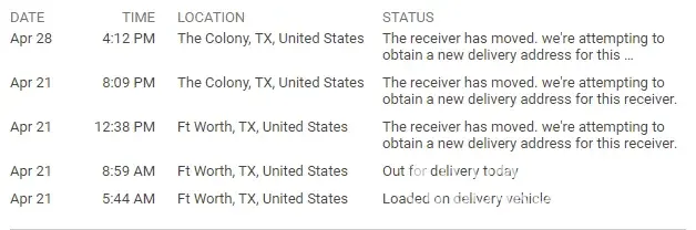Package that has not been delivered in a month