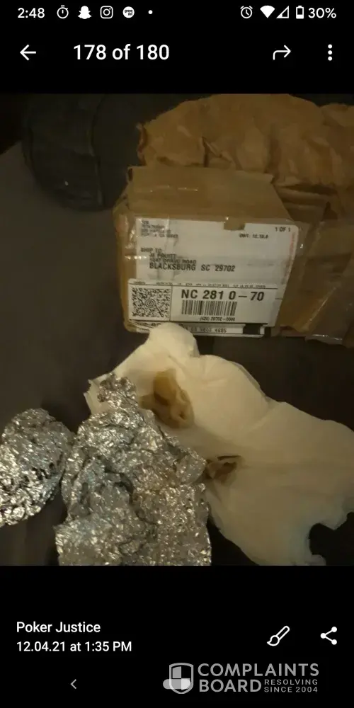 Such a scumbag service... How long do they think they can steal before they are dealt with? 5lb box to a 58 gram box in NC