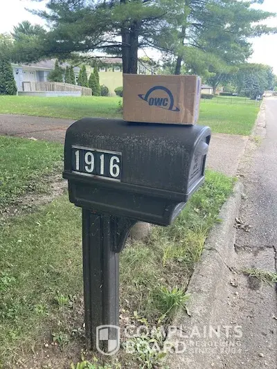 Package delivered on top of streetside mailbox. Not in it. If it does not fit it should be dropped at the door. This was out in the open so anyone driving by could pull over and steal it. I have pictures is interested.