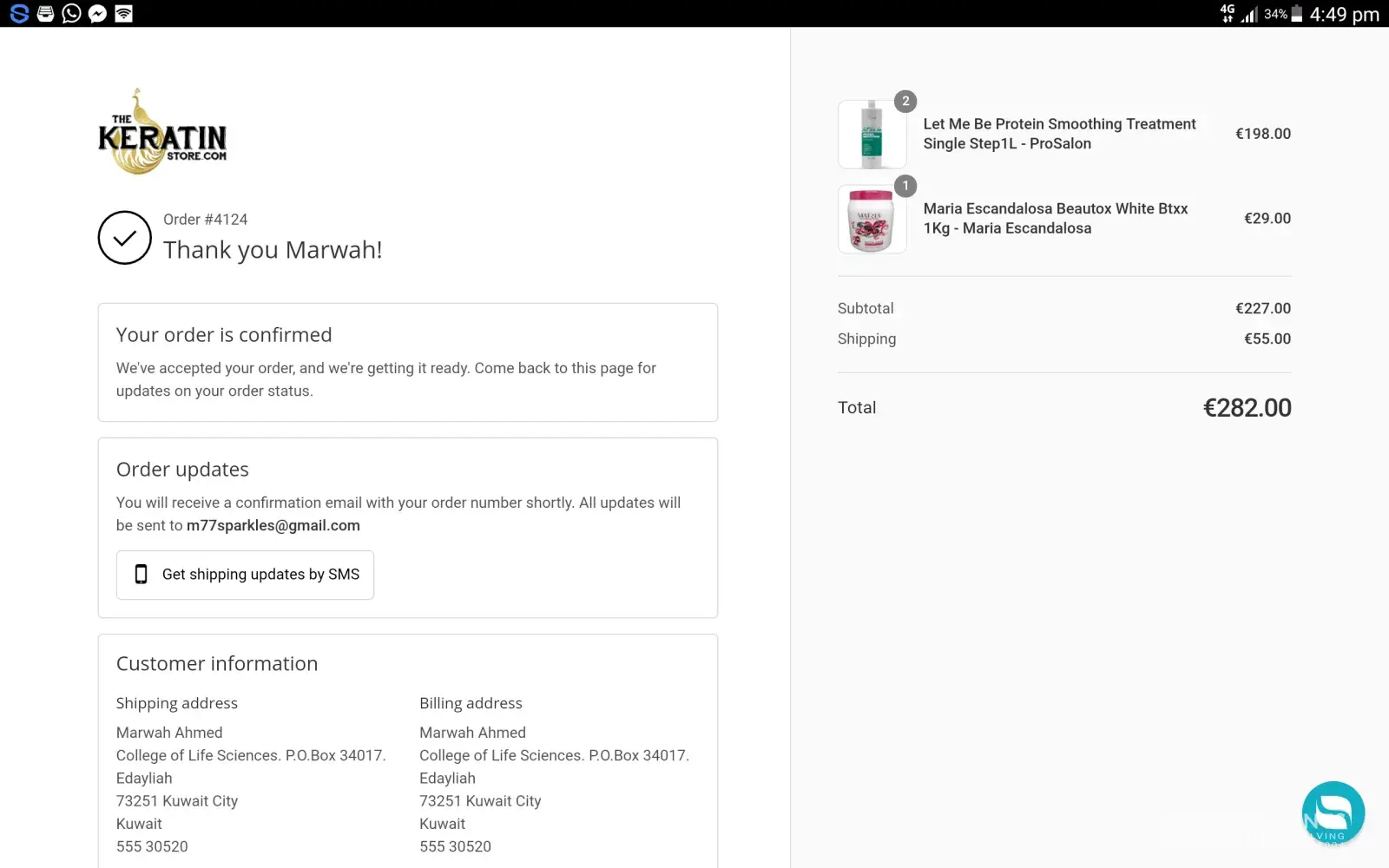 Kindly find the attached copy of my order receipt which already includes €55 as shipping charges, and by the way I am dealing with Aramex and FedEx for 10 yrs now, and they charge me fees also but I always have to pay them a maximum of 5 kd whatever my shipment is . UPS Kuwait has a completely different unreasonable fees.