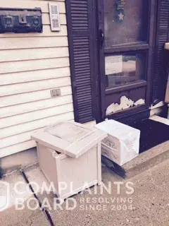 In addition to the UPS Driver/delivery person moving a heavy box from a separate location on the ground to the left side of my front door, that I cannot move in front of my front door, he lifted this heavy box off the top of a container that is to the left side of my front door. And this same UPS driver/delivery person opened this container, and did not replace the top of the container, but left it askew.