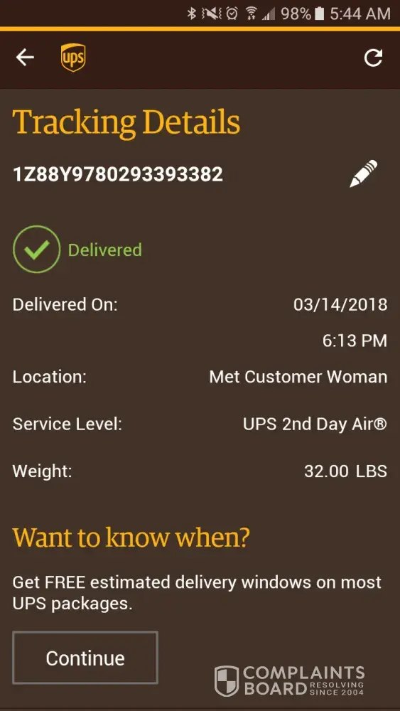 UPS tracking shows: